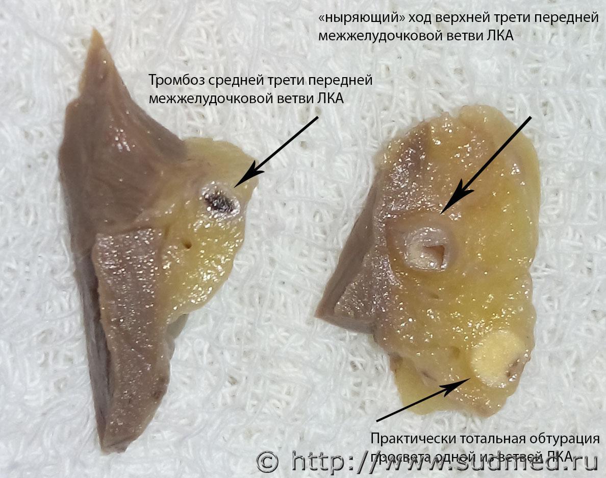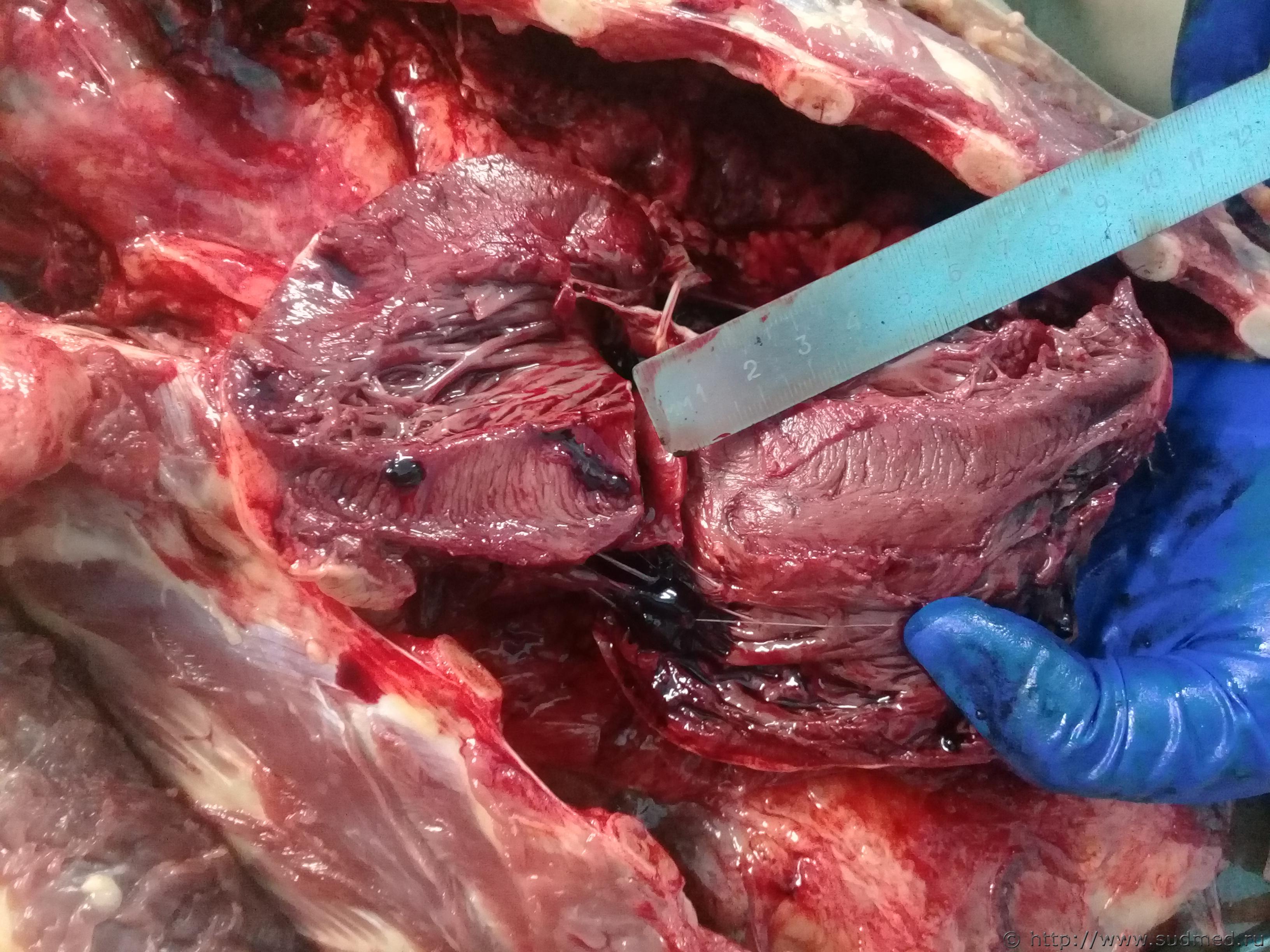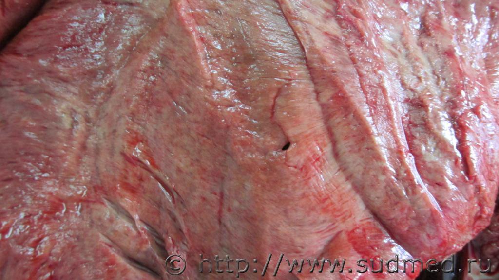 Дистальная часть раневого канала в перегородке сердца, отображающая острие клинка ножа.