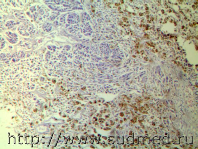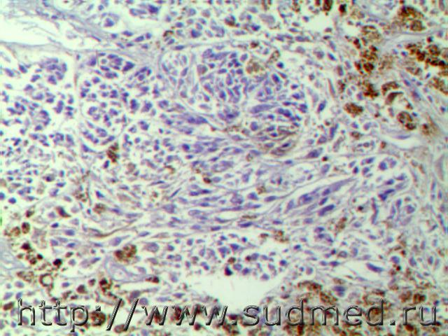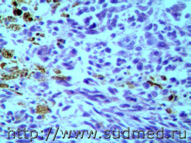 Злокачественная веретеноклеточная меланома с метастазами в головной мозг и легкие. 3и9 рисунок легкие, остальные ткань головного мозга с ММО.