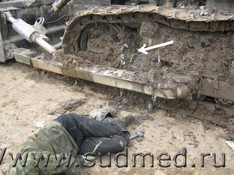 А вы бы стрелочкой показали на первой фотографии откуда течет солидол. Может кто и знает строение механизма и что оттуда может вылететь. Я лично не представляю. В фабуле направления о назначении СМИ было написано: "...получил травму при попытке открутить клапан с натяжного винта гусеницы трактора..." |