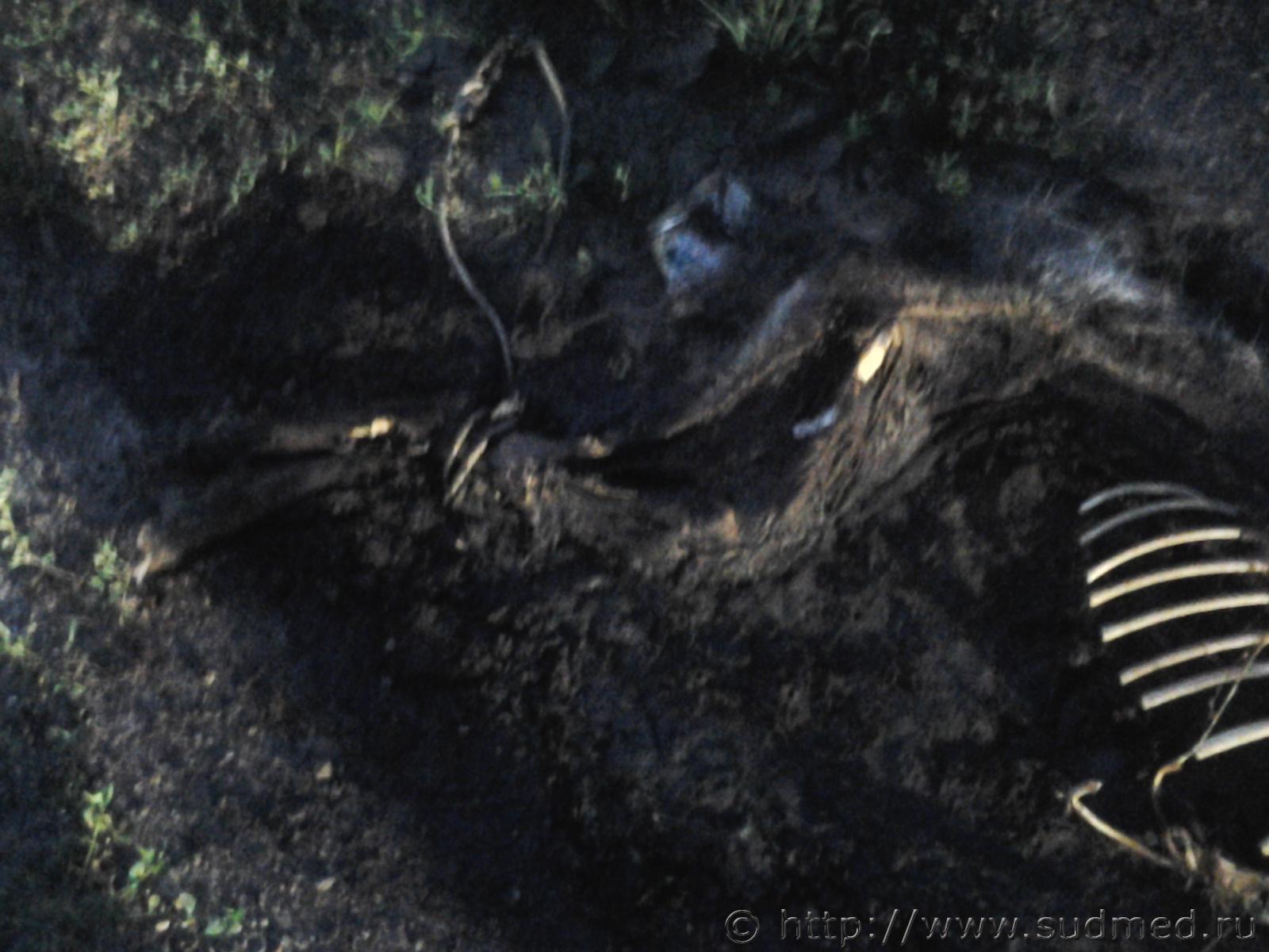 Вообще-то здесь Форум судебно-медицинских экспертов, а не судебно-ветеринарных[u] экспертов. Я не специалист, но из СМ-литературы следует, что за лето труп на грунте под воздействием внешних явлений в том числе и местной фауны может скелетироваться полностью.
