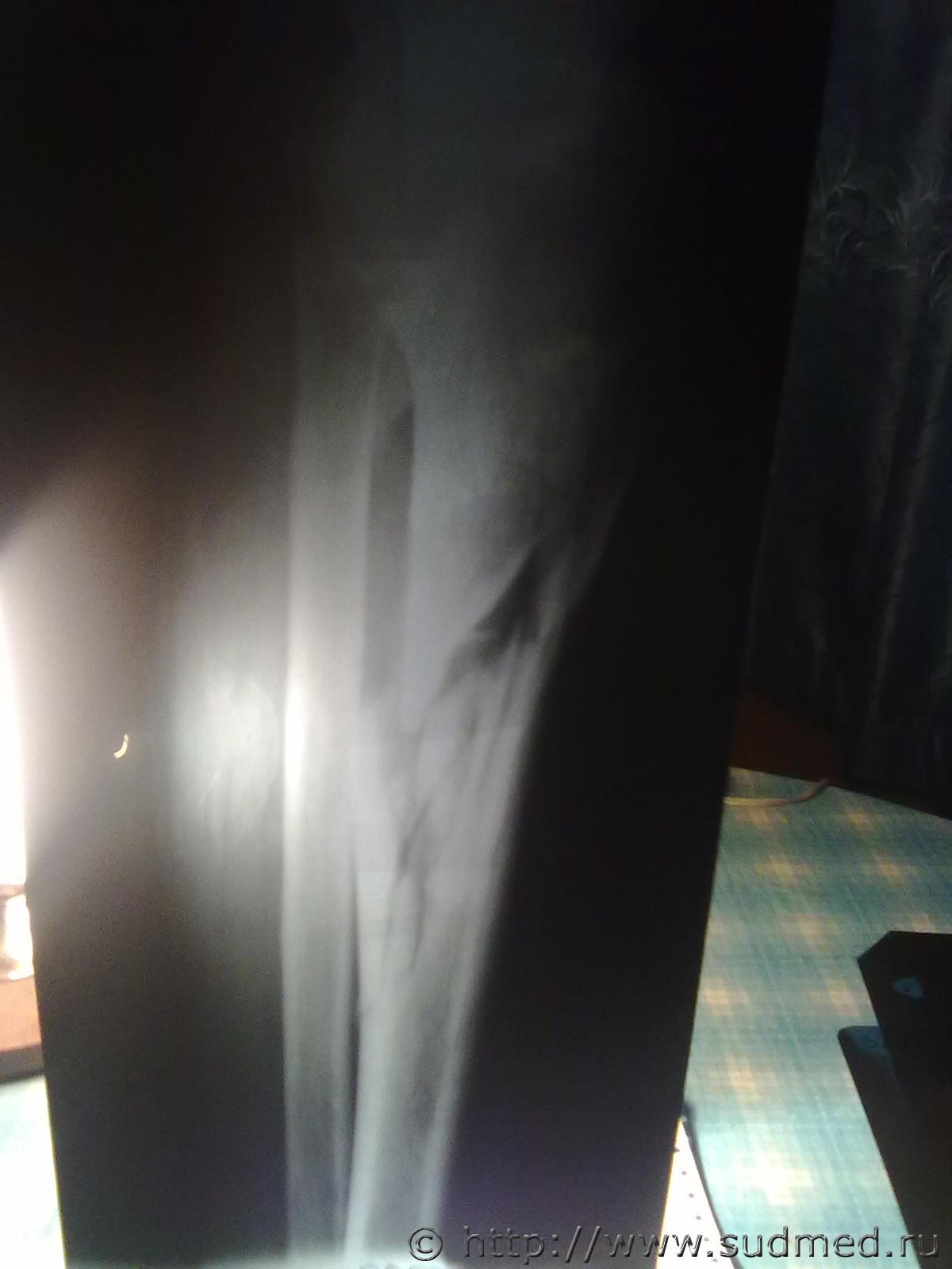 Спасибо, за отклики. Основной диагноз: закрытый оскольчатый перелом верхней трети левой большеберцовой кости со смещением осколков. Снимок(к сожалению, плохого качества) прилагаю.