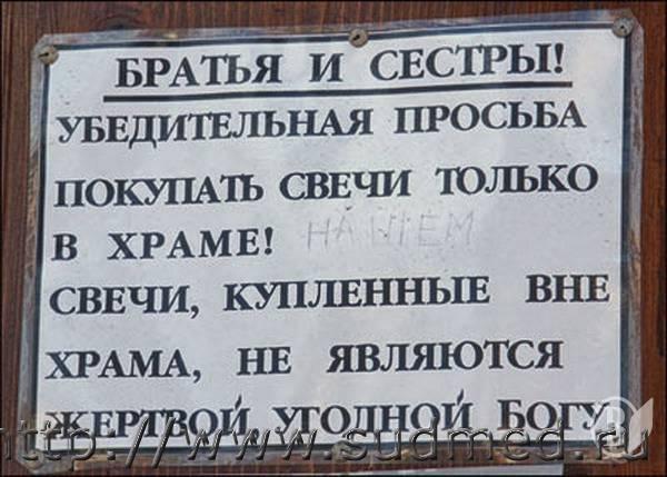 Как не имела церковь ничего общего с верой в Бога, религией, так и не имеет. Просто бизнес, основанный на этой вере. Давно уже надо зарегистрировать ООО (или ОАО) "РПЦ". Да РПЦ уже давно ЗАО, только Бог в нем не акционер.... у ритуальных агенств договоры уже не только с продавцами мотоциклов (из анекдота), но уже и мошнниками в рясах((( |