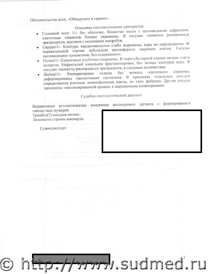 Отправляю Вам акты исследований из Бюро. Возможно, они помогут прояснить что -то. Прошу так же разъяснить: 1) 0,5 промилле этилового спирта что означают? 2) диагнозы в гистологическом исследовании это прижизненные болезни или причина смерти? Заранее спасибо! Эскизы прикрепленных изображений |