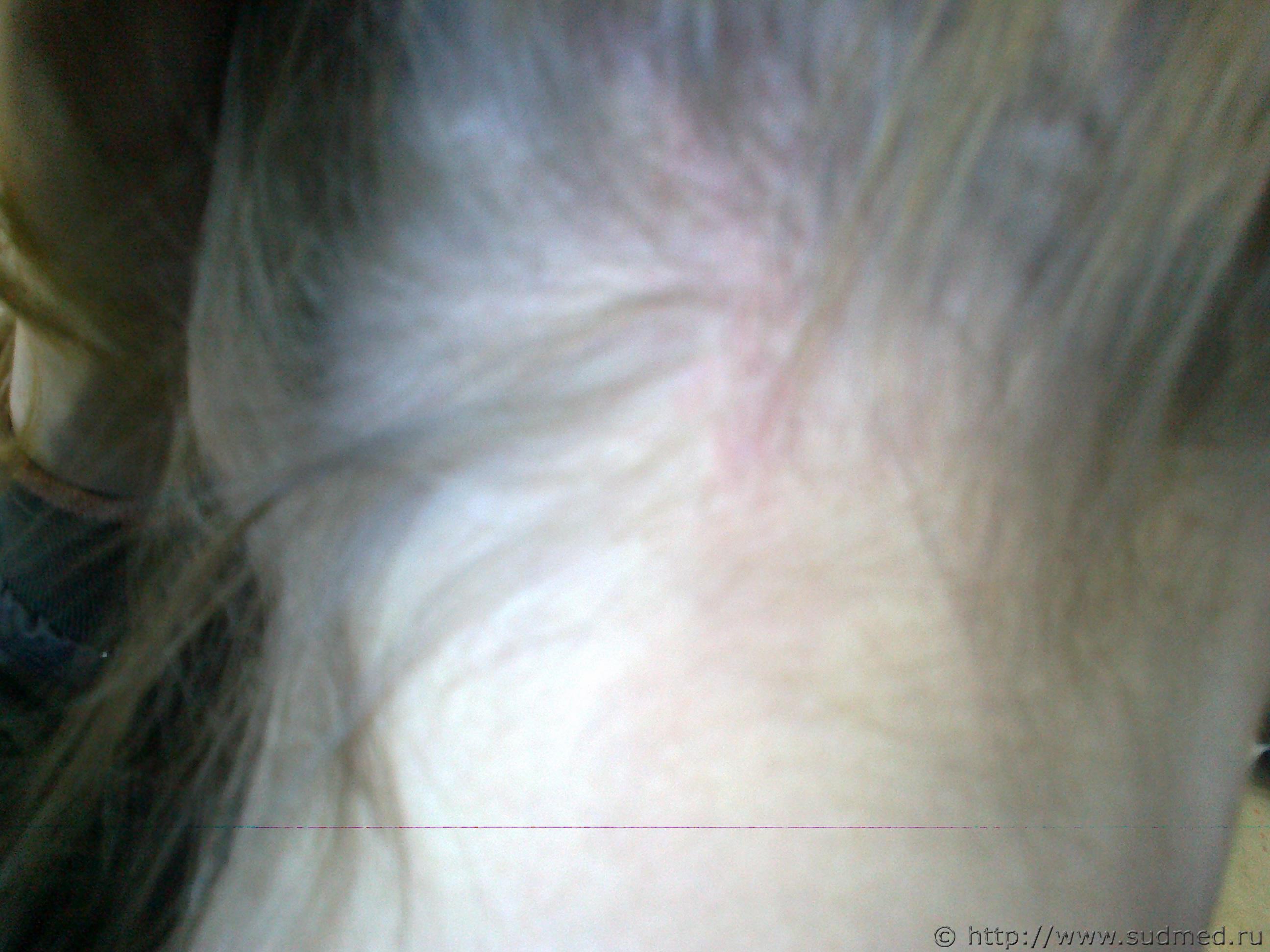 Ув. медики! Три месяца назад поставлен диагноз - ушибы волосистой части головы в затылочной области. сначала ощущала шишки и отёчность шеи ( естественно при прикасании боль) Сейчас в затылочной области на коже покраснение. Хирург описывает: Имеются пигментные покраснения кожи , отёка нет) не возвышается над поверхностью кожи, при польпации болезненный, признаков воспаления нет. Может ли шишка ушиб оставлять такой след? фото прилагаю. Или после гематомы или синяка остаются пигментные покраснения?( Похоже ли то что на фото на пигментные покраснения или всё таки это синяк? ) Врач поставил дз под вопросом: Гемангиома затылочной области ?