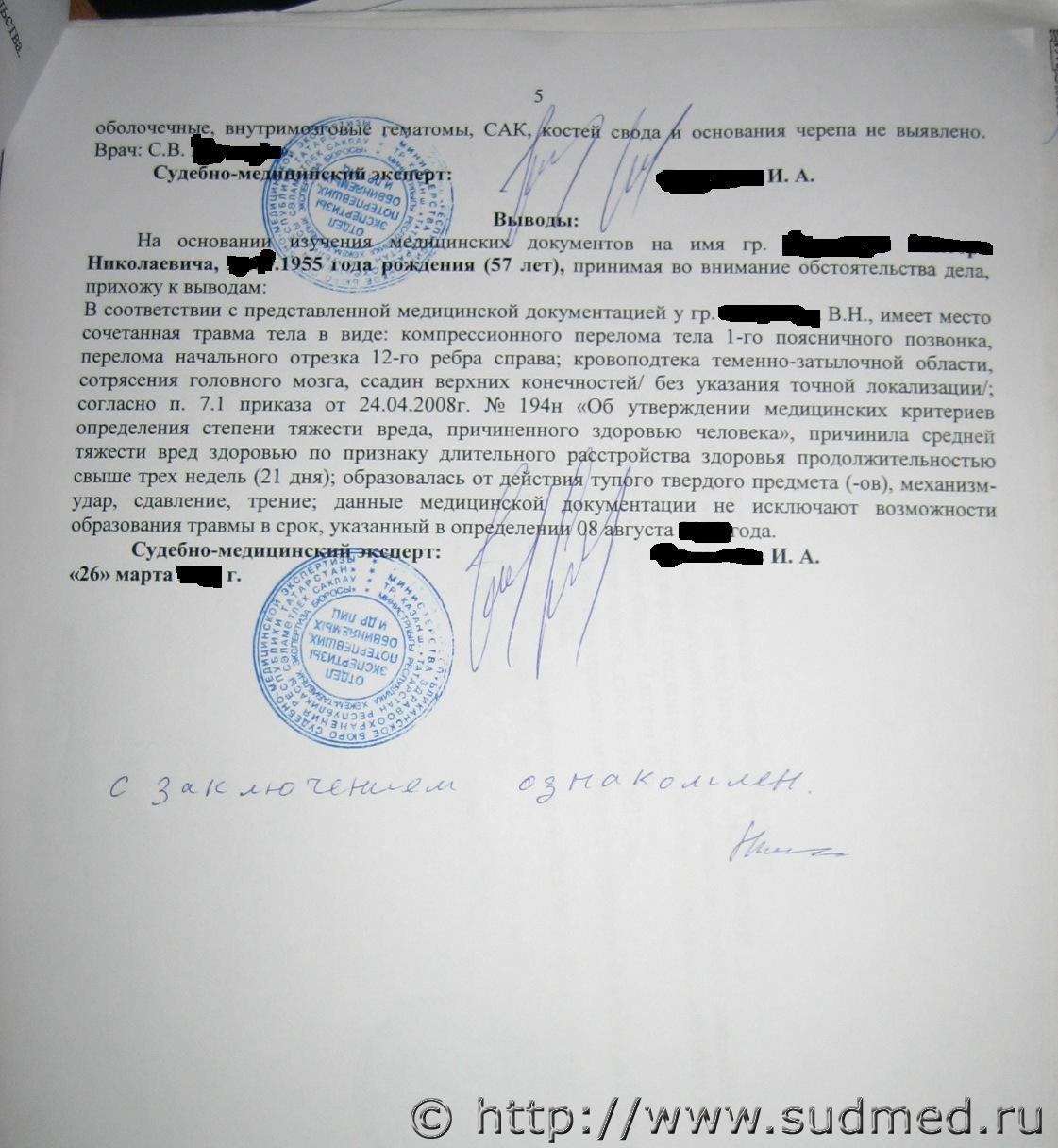 Нужна ваша помощь. Что вы думаете по поводу заключения эксперта. Правильно ли я понимаю, что средняя степень тяжести установлена только по признаку длительного расстройства, откуда он взял, что было больше 21 дня? Не совсем понятно, действие тупого твердого предмета, механизм - удар, и т.д. Какое здесь отношение имеет авто, где удар пришелся по ногам. Объясните пожалуйста.