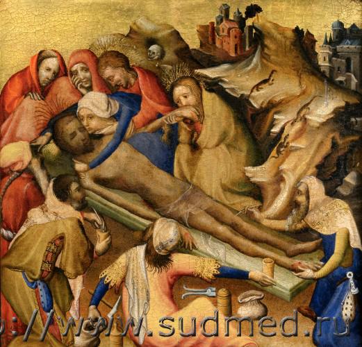 Мало вам всем этого на работе, чтоли... Простите, но не понимаю таких увлечений...Я свою работу люблю, но не настолько, чтобы возводить подобные образы в фетиш и восхищаться такими рисунками. Их вид утомляет, портит настроение и аппетит, снижает либидо. В общем, фу.. Уважаемый Толстый! Ну почему же сразу фу? Не согласен. Здесь больше истории все-таки, чем фетиша и восхищения (лично для меня). Вот, например, еще одно изображение, на котором запечатлена процедура подготовки (бальзамирования?) тела Христа. Обратите особое внимание на старцев "вногах", а именно на их действия и набор инструментов, разбросанный вокруг... Эскизы прикрепленных изображений |