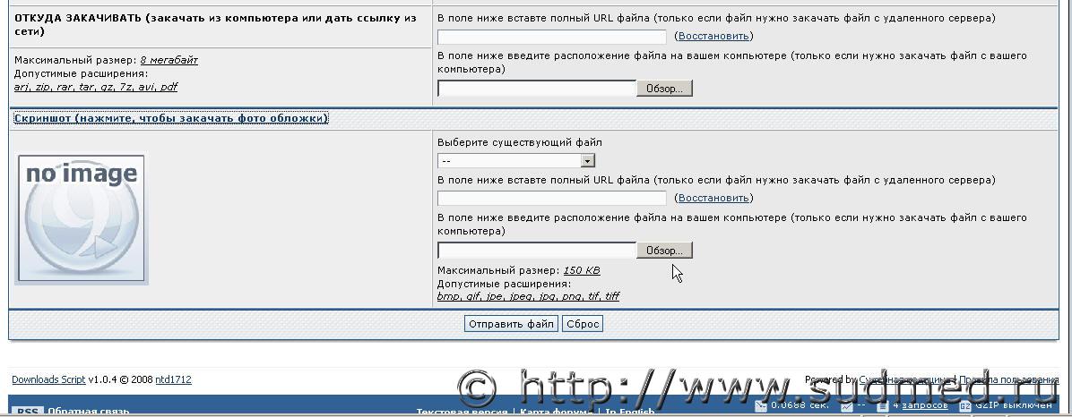 ![]() После чего меню развернется и появятся дополнительные поля, среди которых нужно использовать кнопку "Обзор..." (см. скриншот - над курсором) ![]() В конце как обычно нажать "Отправить файл". P.S. На загружаемую картинку действуют ограничения Цитата Максимальный размер: 150 KB Допустимые расширения: bmp, gif, jpe, jpeg, jpg, png, tif, tiff |