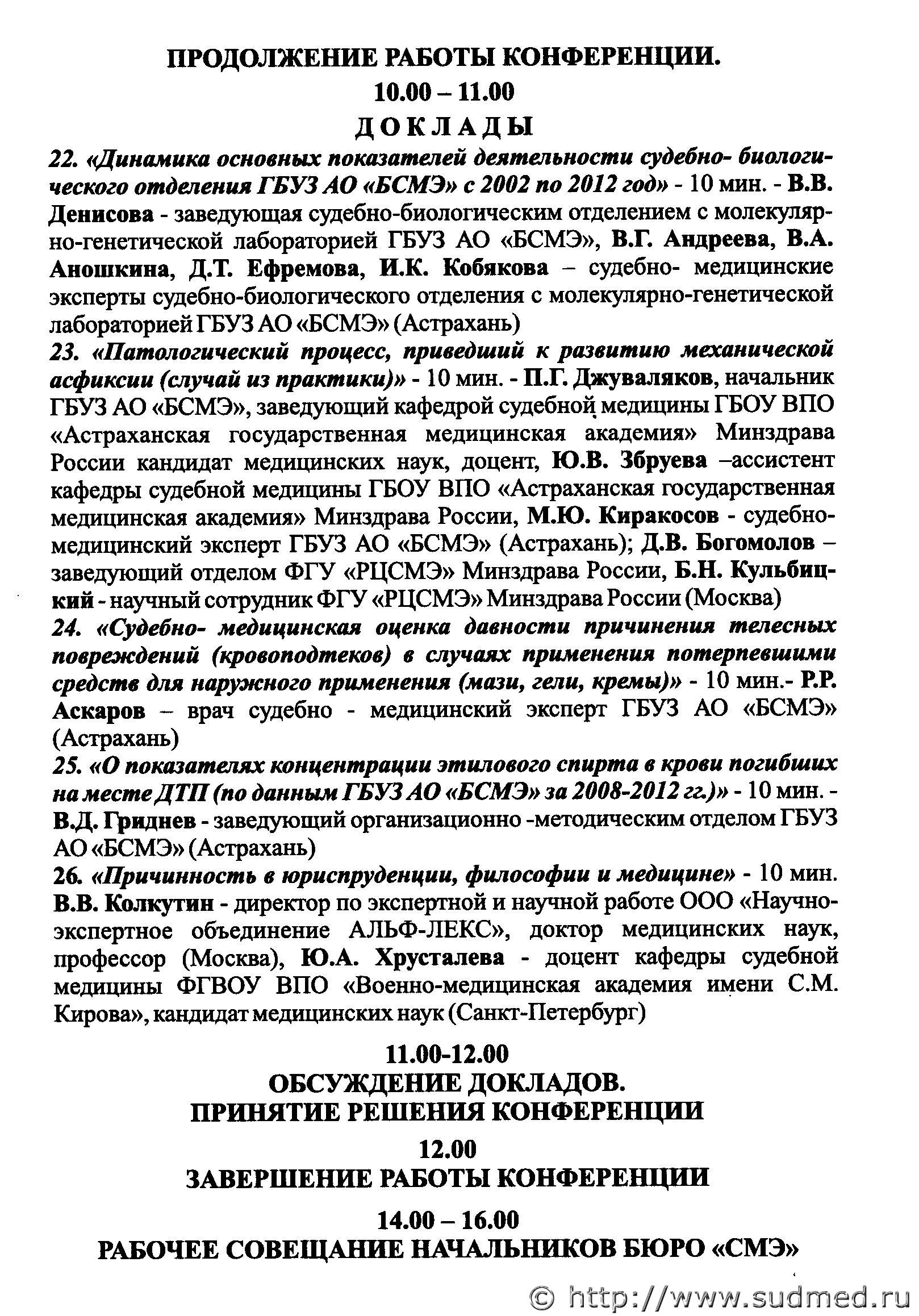 Джуваляков Г.П. бывший нач-к и зав. кафедрой Астраханского СМЭ; его сын, Джуваляков П.Г. сменил отца на этих должностях. Не плохая преемственность..) Да, организаторы Чтоб всегда..., конференции экспертов так проходили (надеюсь не официальная часть была .... огого). И чтоб каждый год, и чтоб у всех БЮРО были деньги на делегатов (не менее 10 от БЮРО) |