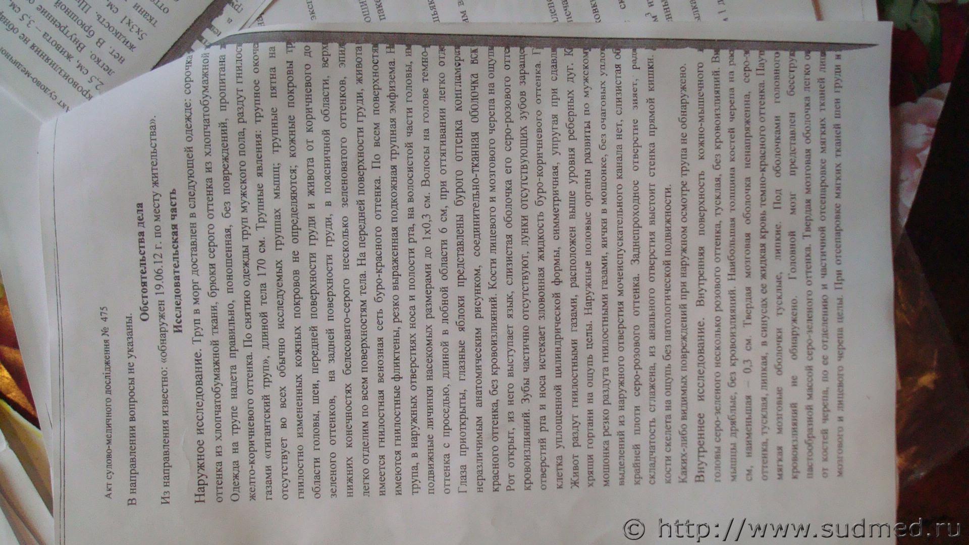 Предоставьте,но с соблюдением правил форума. Акт вскрытия необходим весь. "Багровое лицо" - это ещё не отравление. ВОПРОСЫ почему не определили причину смерти брат не болел и пролежал только 2дня?можно ли отравить клофелином?по результатам данного акта эксгумация поможет установить причину смерти?кто определяет яды в алкоголе токсикологи или мчс? |