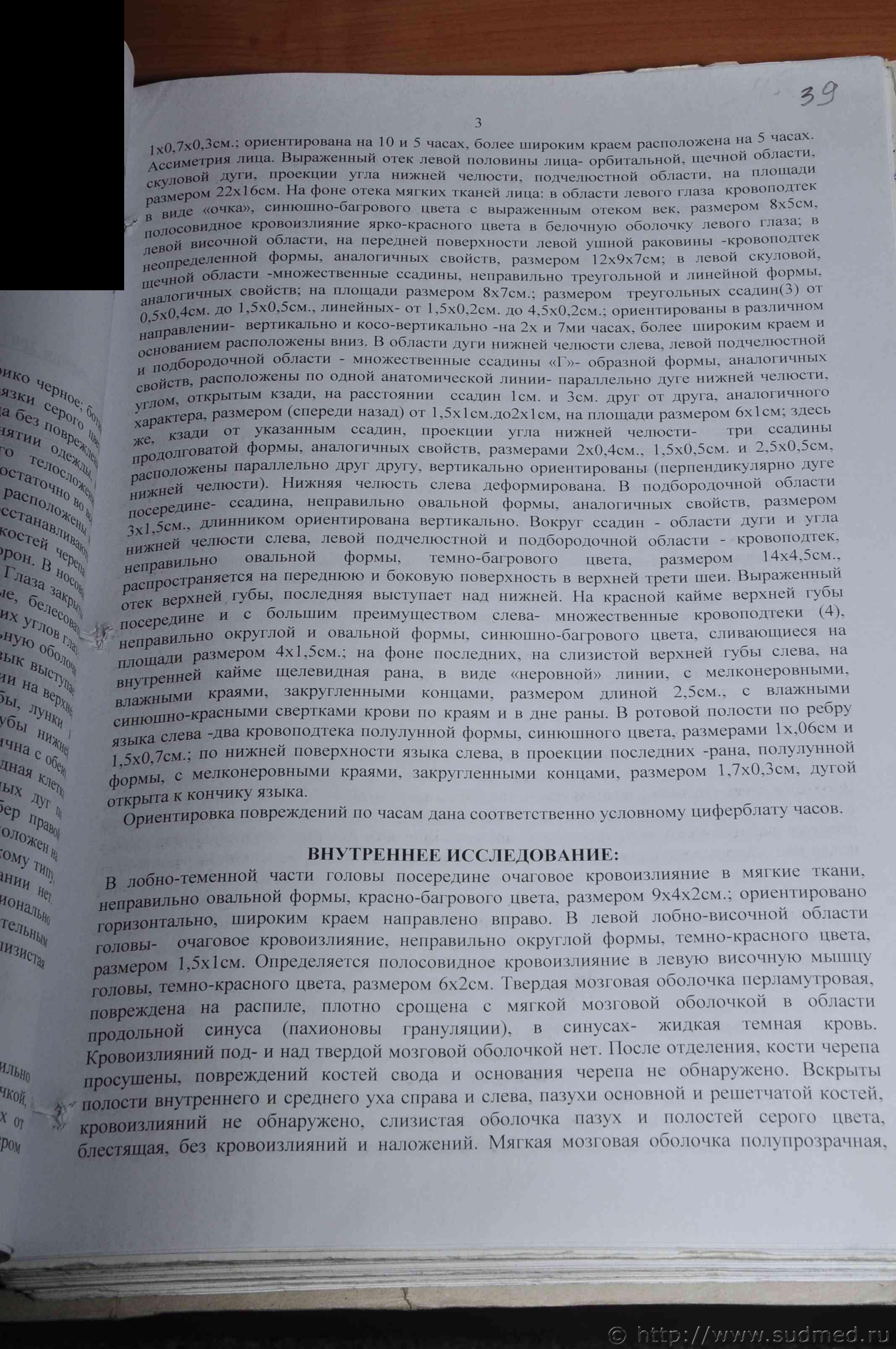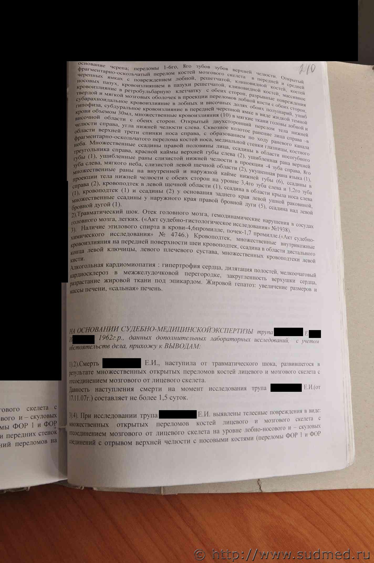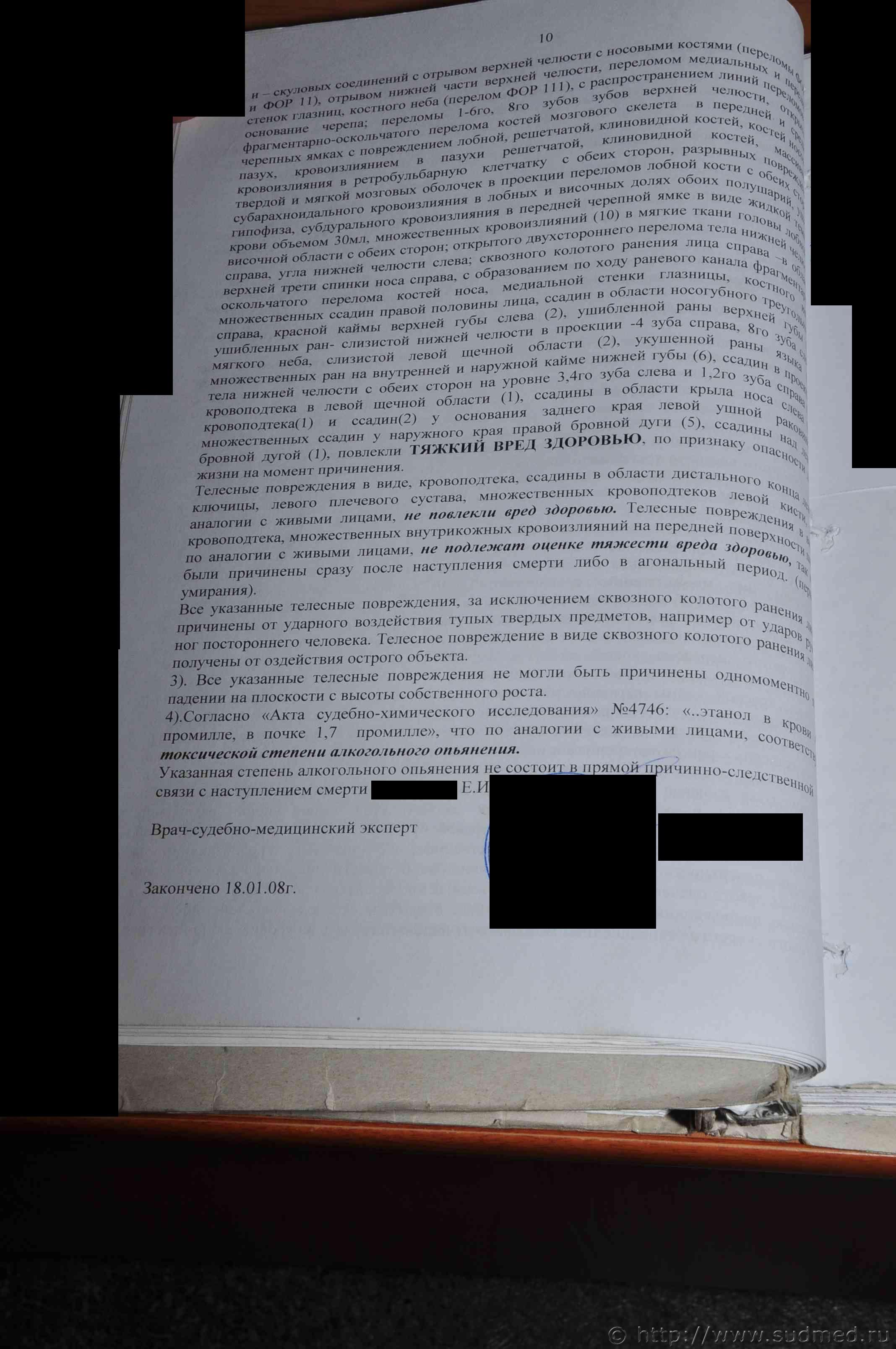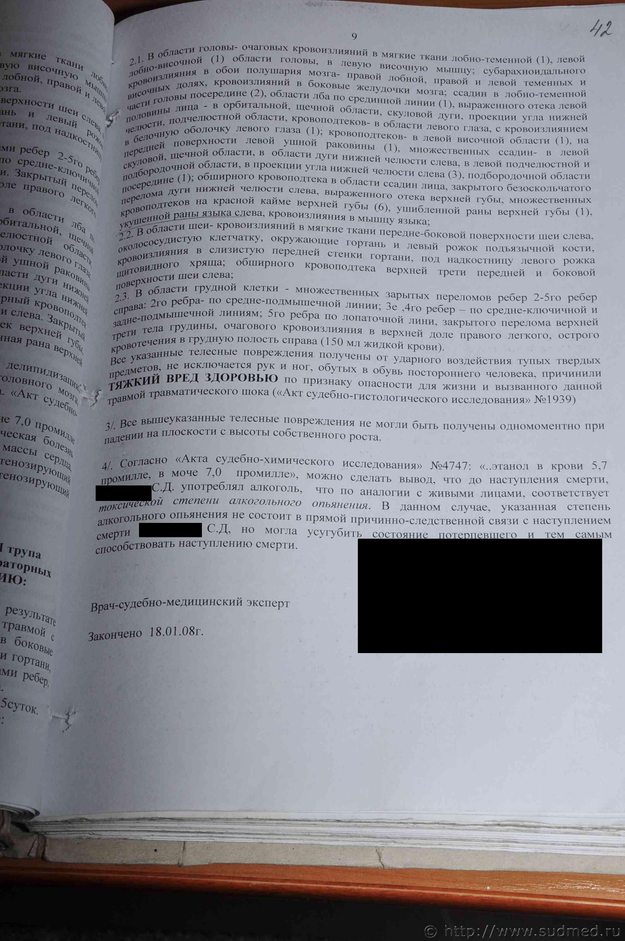 Хочу заметить, что Вами выложен "Акт судебно-медицинского исследования трупа", а не "Заключение эксперта" (что предпочтительнее в данном деле), |