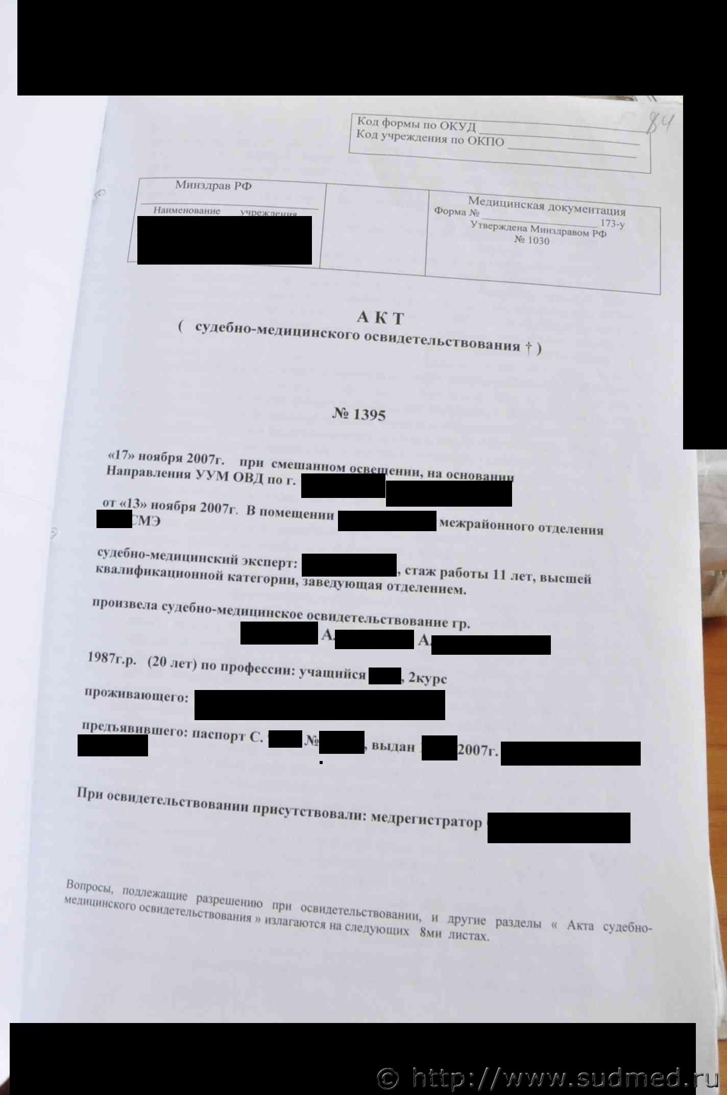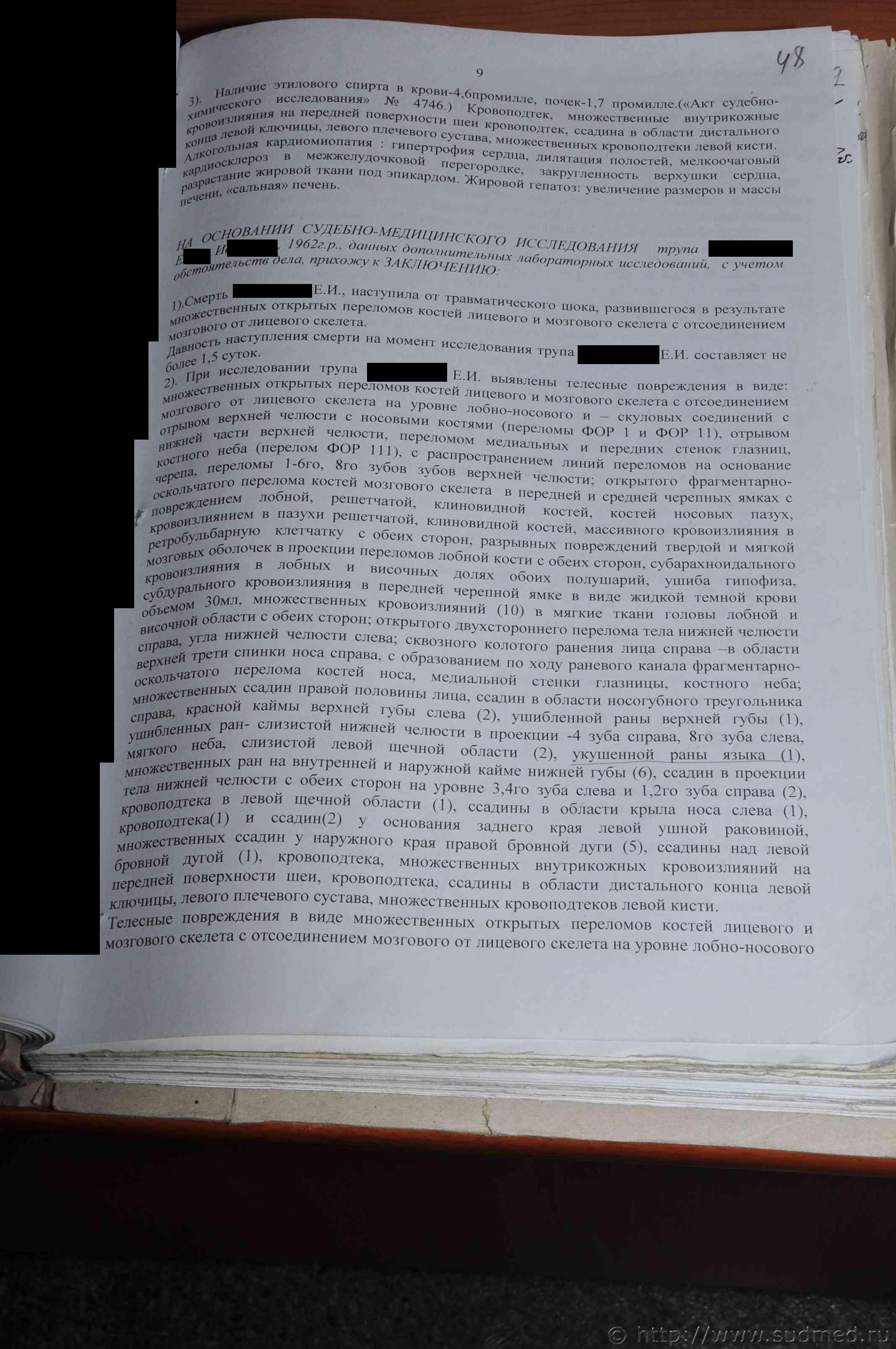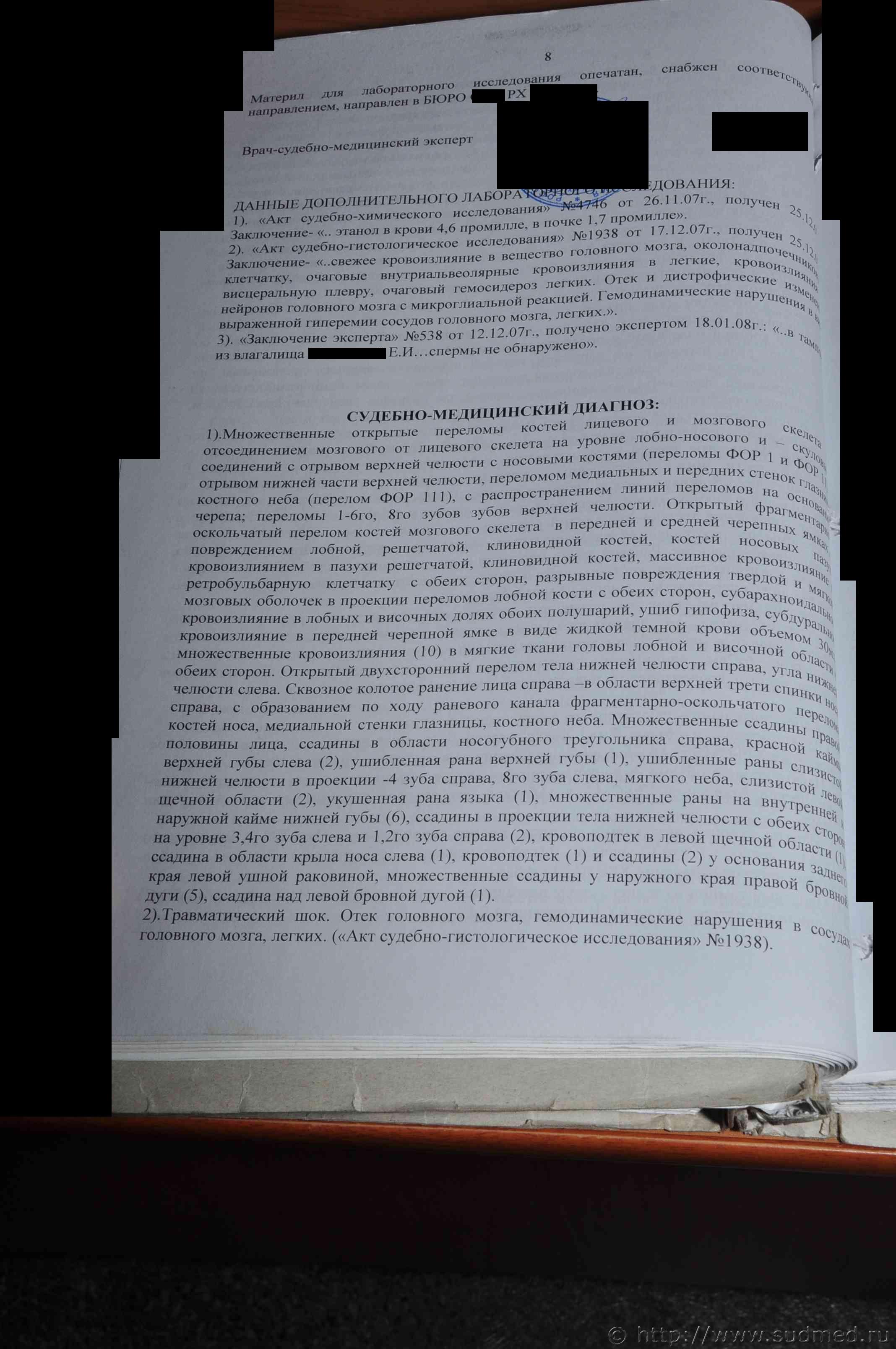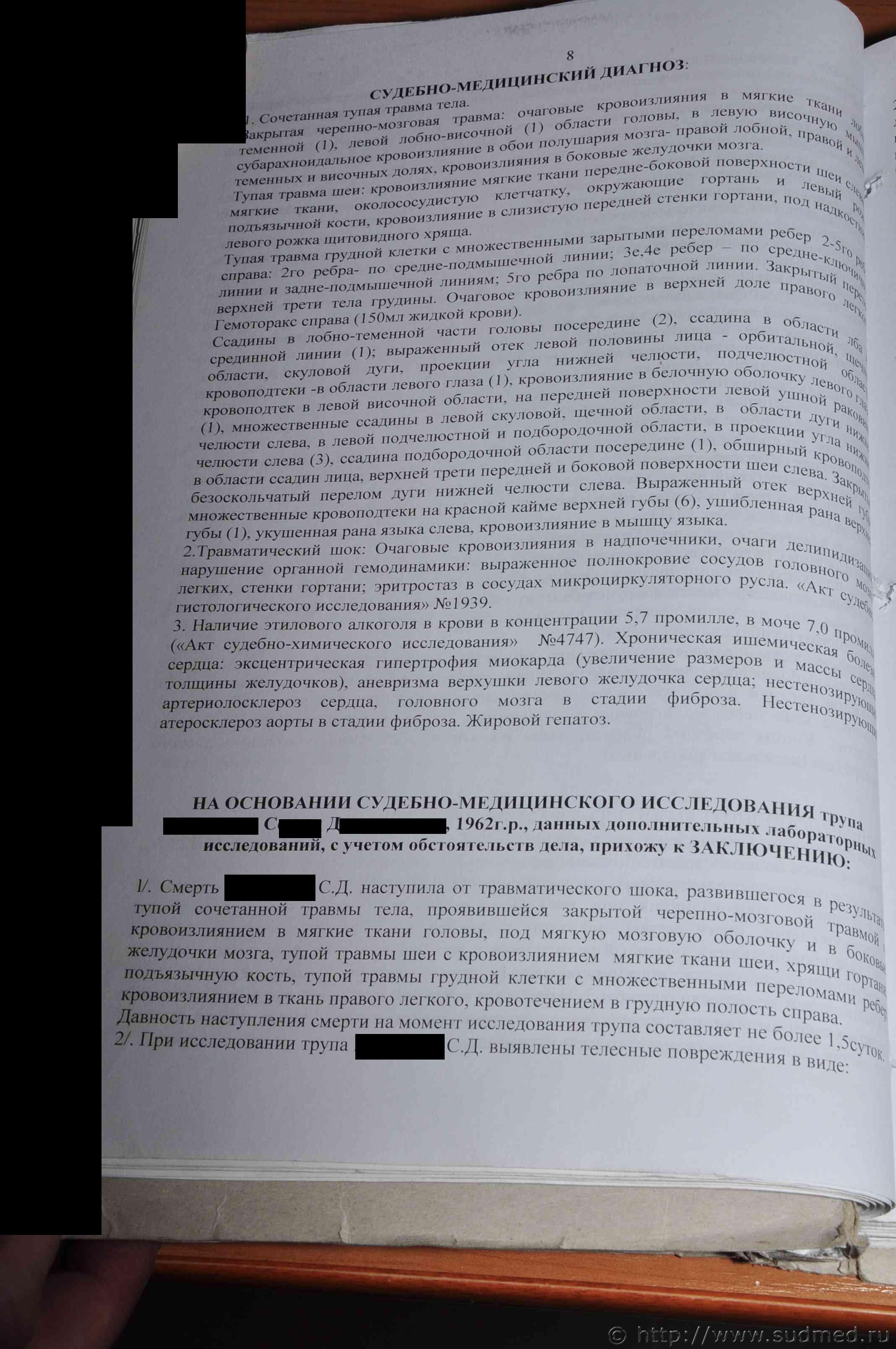 Хочу заметить, что Вами выложен "Акт судебно-медицинского исследования трупа", а не "Заключение эксперта" (что предпочтительнее в данном деле), |