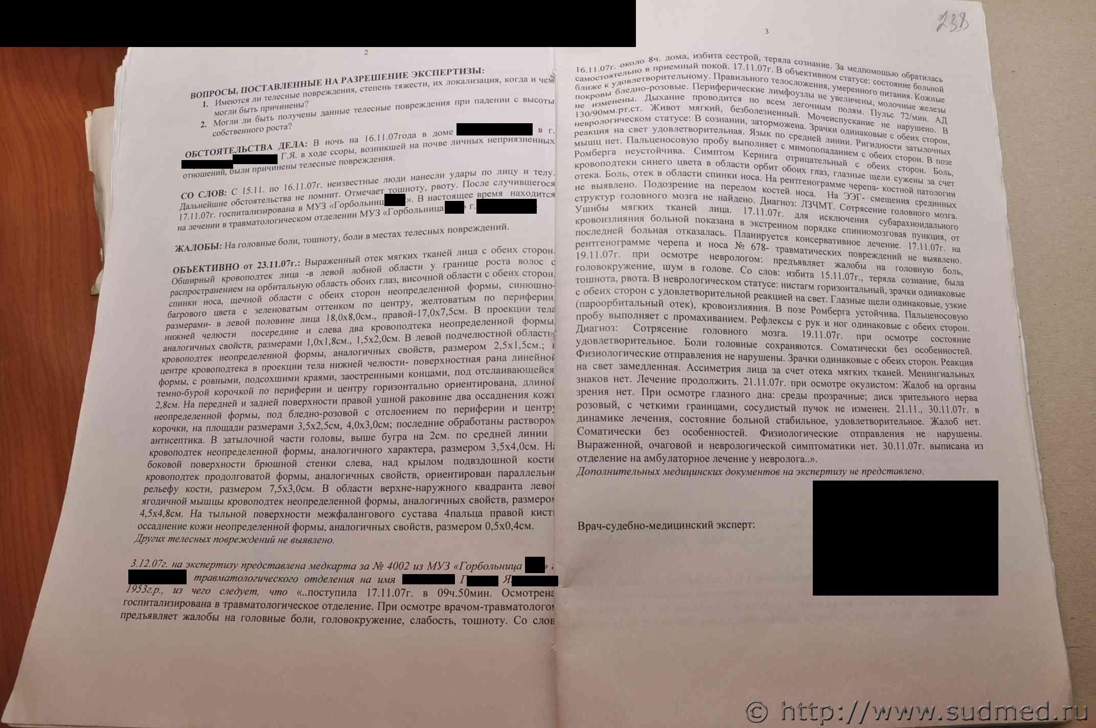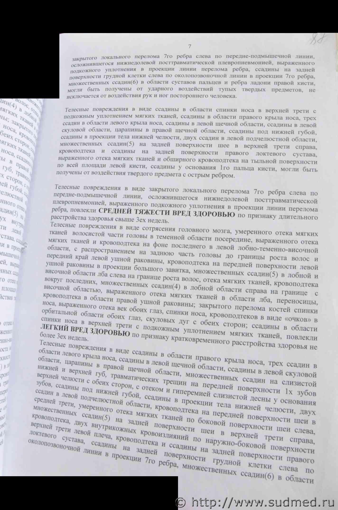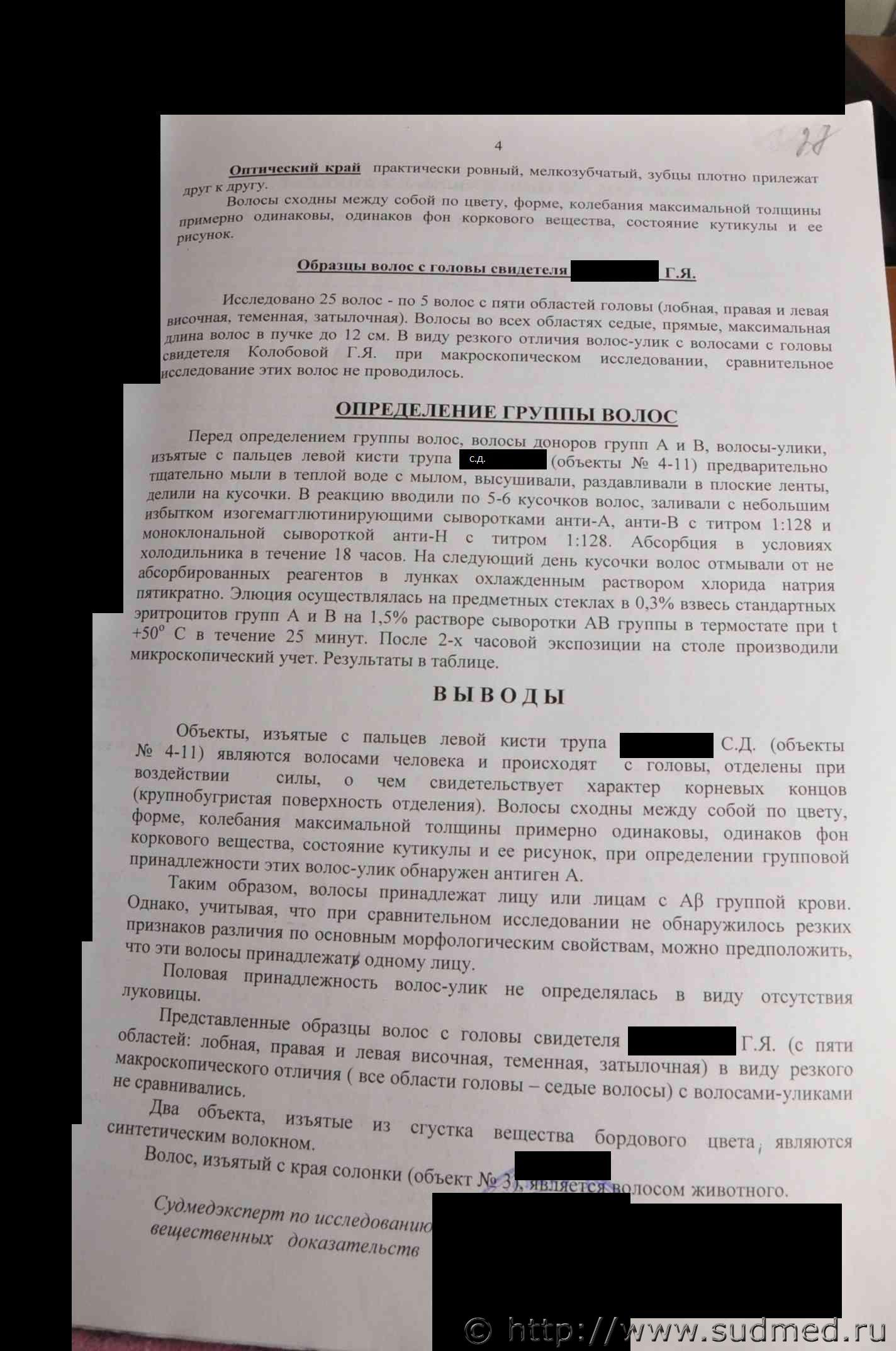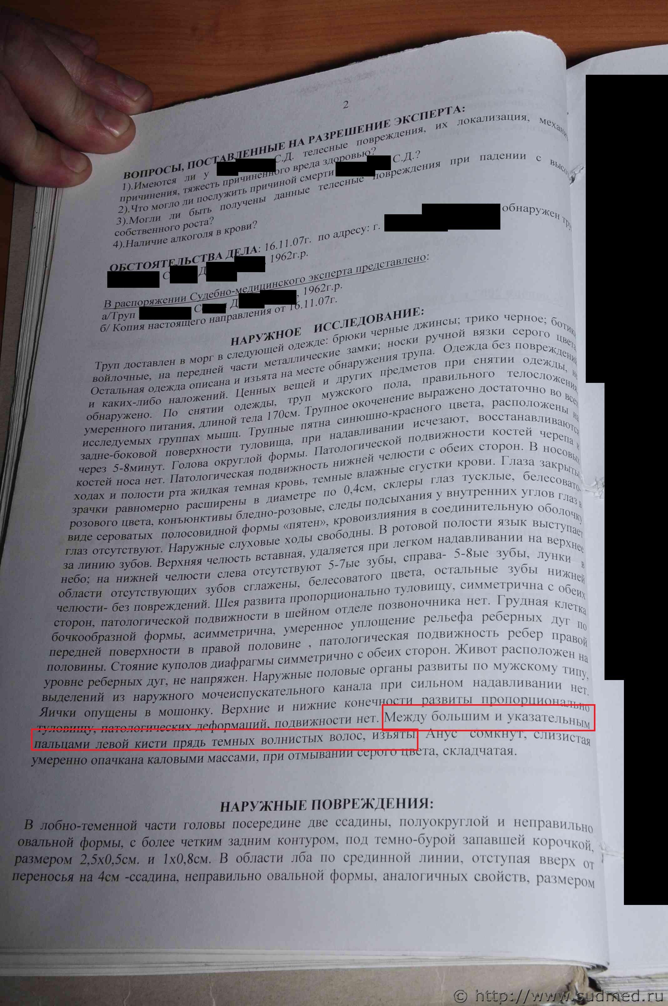 Вполне аргументированные выводы. И какой у Вас по ним вопрос? у трупа ВЫ видели телеснве повреждения в ввиде множественных переломом черепа с отслоением мягкой оболочки от твердой и множественных переломов челюсти,сколов зубов, а на руках в области кисти нет даже ни одного повреждения,ведь согласно СМЭ причинено руками,ногами постороннего человека. На выложенной в файле Экспертизе описание трупа моей сестры,а экспертиза живого лица-Экспертиза моего сына,которого обвинили в ее убийстве.Его првреждения не соответствуют количеству и тяжести ударов. |