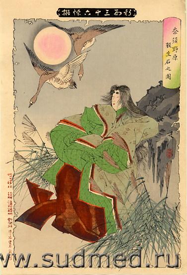 Облачная гряда Легла меж друзьями… Простились Перелётные гуси навек. Фудзивара-но Садаиэ Моя любовь - Как облако в лазури, Плывущее неведомо куда, - Встречаться нам с тобою не судьба И даже тешиться надеждою напрасно... Идзуми Сикибу Мой рассеянный взор По небесным просторам блуждает, А ведь вроде бы тот, Кого жду, к кому думы стремятся, Не с неба должен явиться. |