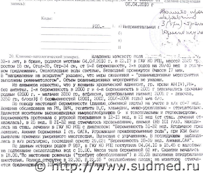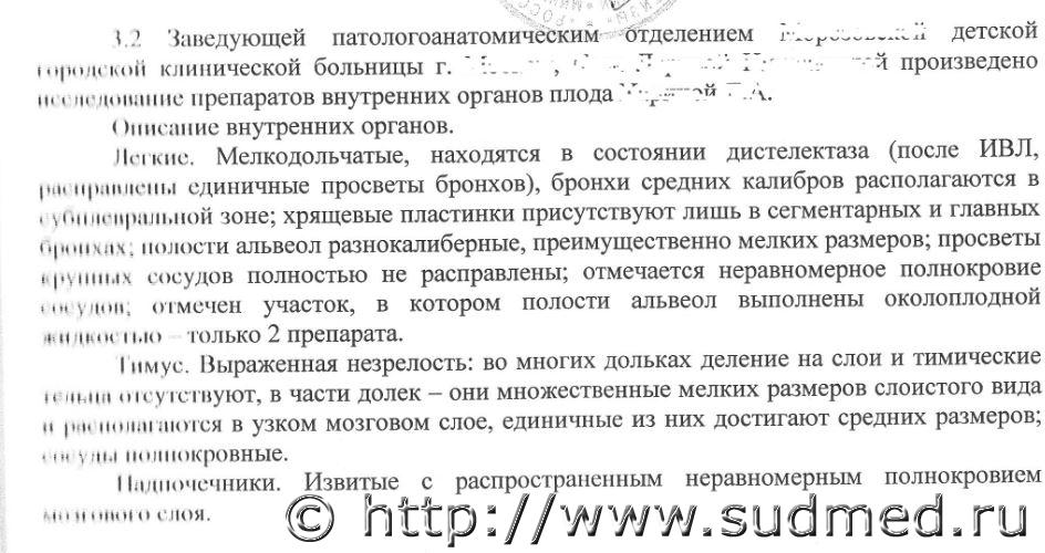 Достоверности никакой. Гадание на кофейной гуще. Спасибо за ответы. Почитал здесь на форуме тему с обсуждением этого вопроса, понял что, сколько специалистов, столько и мнений. плюс здесь же нашел: "Определение давности повреждения мягких тканей при механической травме по морфологическим критериям". И.А.Фролова, Н.Д. Асмолова, Р.А. Назарова ГУ Бюро СМЭ МЗ Московской Области (начальник, заслуженный врач РФ, М.С.Ривенсон) Просто и доступно расписано, даже для меня не просвещённого. Спасибо такому форуму. Выкладываю протокол (карту) исследования трупа новорожденного, гистологию, исследование плацеты (+ гистология плаценты). здесь плохо видно, продублирую текст протокола пуповина 35см, но наверное надо складывать с пуповинным остатком. итого 35+6=41 см. Это уже не короткая пуповина? а это повторая гистология при экспертизе, по трупу и плаценте: основной диагноз одинаковый, а вот фон совершенно разный. это правильно найдено? подтверждено в исследовании? серозный менингит и др., выраженная незрелость органов... а маточно-плацентарная недостаточность 2ст, и острая плацентарная недостаточность полностью опровергуты? |