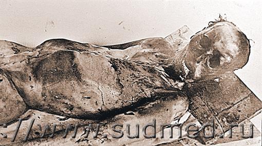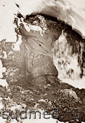 P.S. Я долго рассматривал эти фотографии...... 1. Имейте ввиду, что погибших нашли не через месяц. Это неправильные сведения. Тела, которые нашли последними (и Дубинину в том числе) -4, 5 мая. Так что прошло 3 месяца. 2. по вопросу могли быть травмы Дубининой следствием разложения трупа. Нет не могли! 3.Так же и отсутствие языка и глазных яблок - это не процесс разложения трупа. Пусть судмедэксперты подтвердят, или опровергнут сказанное мной. Вообще надо отметить что сохранность трупов была довольно удивительная, учитывая что столько времени трупы соприкасались с водой. Скорее всего это связано с тем что была зима. 4. Особо хочу отметить: Представленная (вторая фотография ) на мой взгляд это не труп Дубининой. Это ложная фотография. Не знаю откуда вы ее взяли и откуда она у тех откуда вы взяли. Я сужу по тому что сохранность тела была много лучше чем на представленной фотографии. Это можно судить по другой фотографии Дубининой, когда ее положили на снег лицом вниз (после обнаружения). Так же можно судить и по описанию вскрытия Дубининой. |