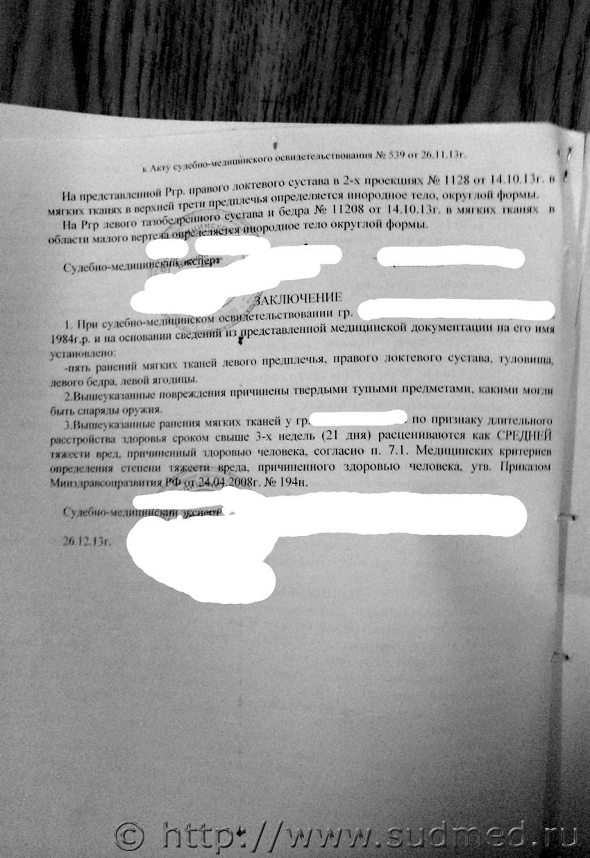 2. Хирург мог ошибиться. 3. Вторично, значит через нагноение. Это влечет их увеличение. 4. Из чего следует заключение о злоупотреблении алкоголем? Эксперт не оценивает нетрудоспособность, он оценивает длительность расстройства здоровья. Она оценена по объективным данным. 5. Фактически применен 12 пункт.  |