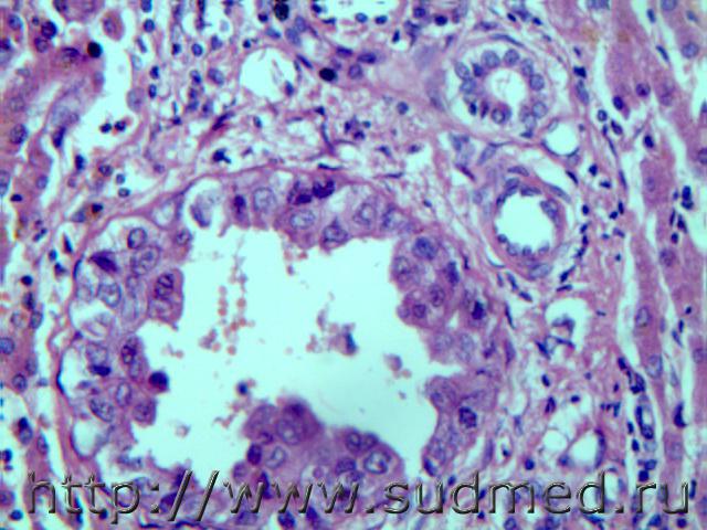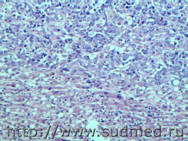 Ув.коллеги! Возраст-1939г.р. Изменение в печени - жировая дистрофия, пристеночный тромбоз вены триады, застойная печень,центролобулярный некроз, хронический гепатит, базофильные с гиперхромными очагами гепатоцитов с высокой митотической активностью, метапластические изменение эпителий желчных протоков и очаги регенерации( рыхлое разрастание соединительной ткани. Вопрос как Вы считаете ув.форумчане по опухолевым участкам печени - это аденома или аденокарцинома?