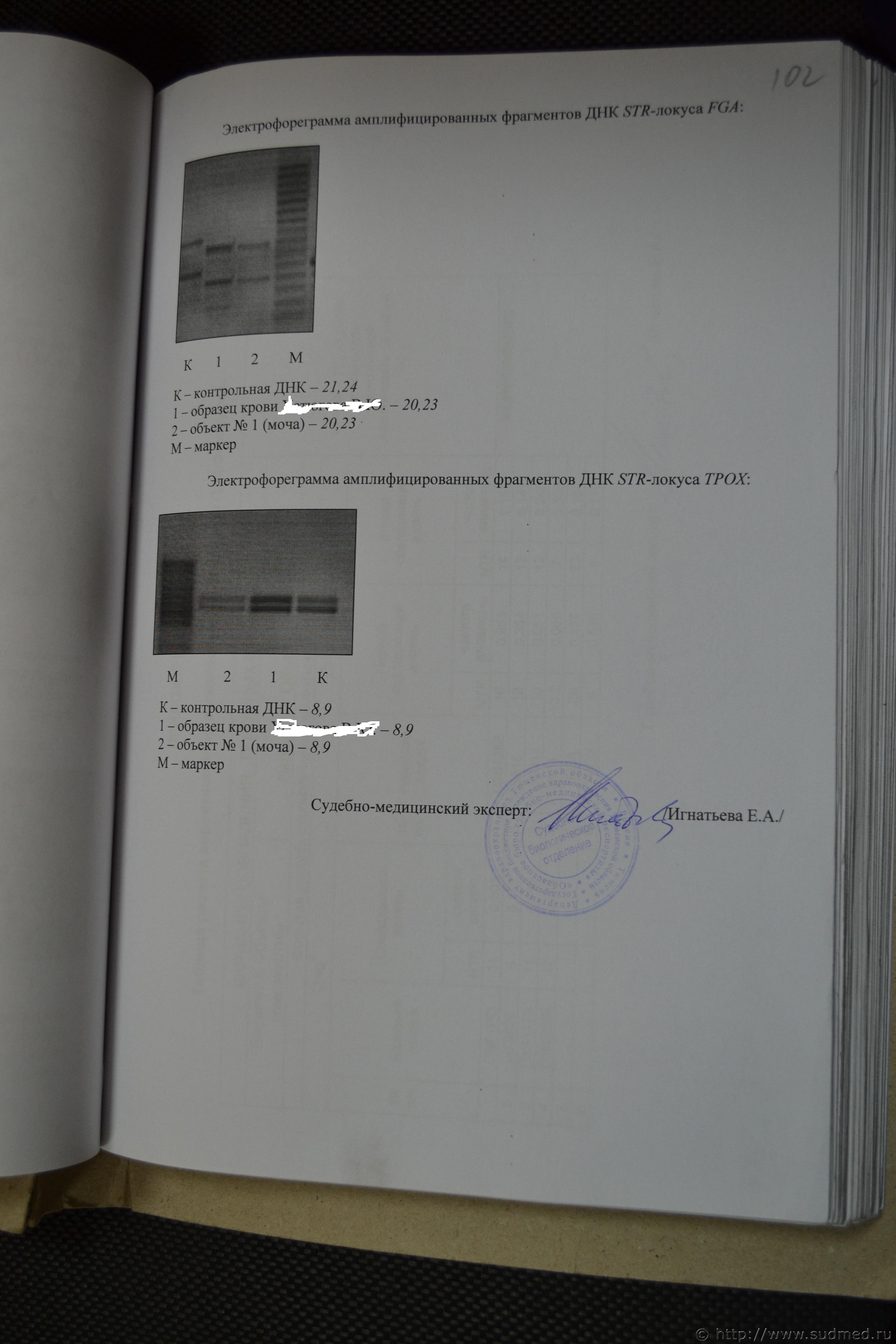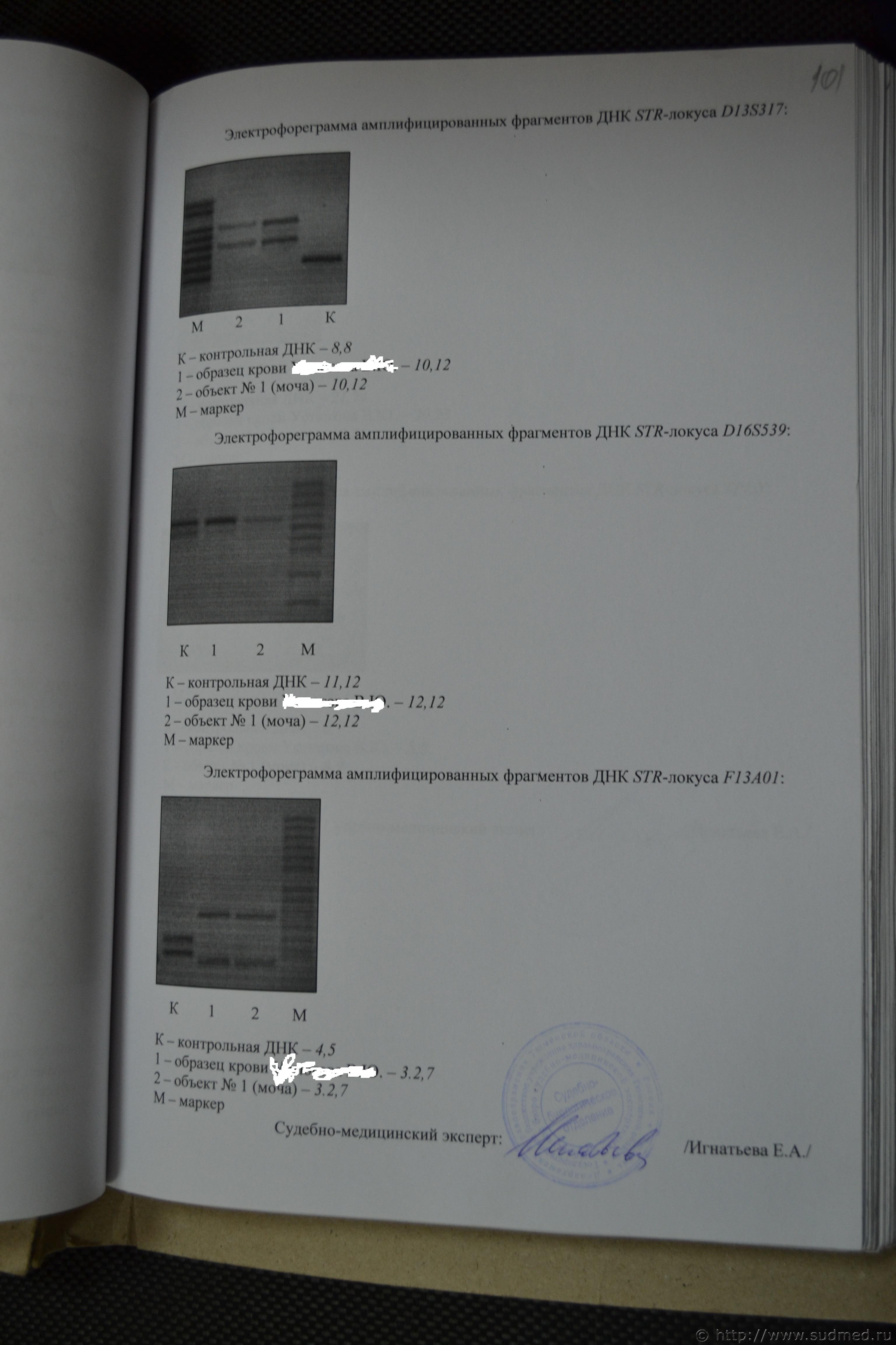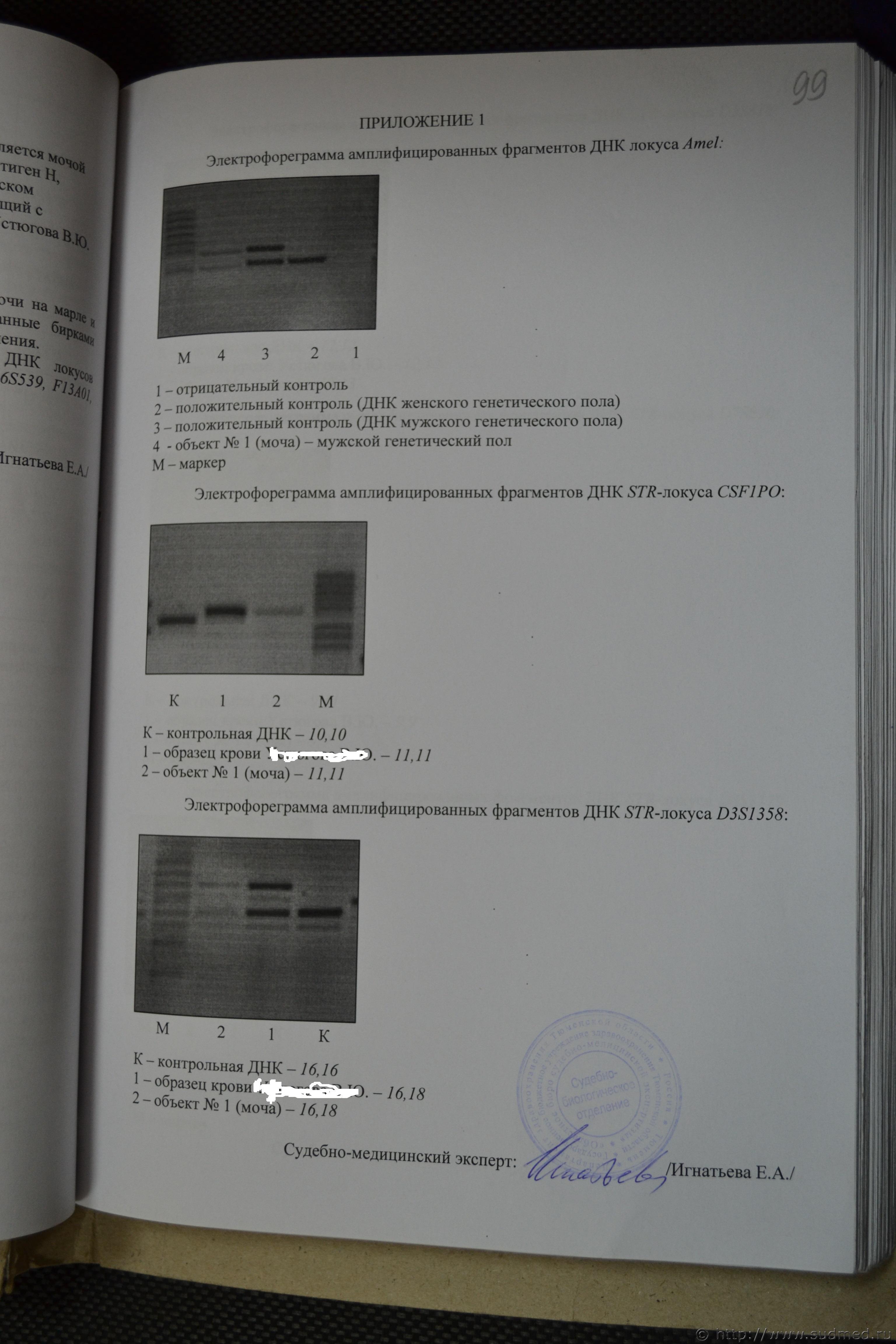 Да неважно это Вам. Мои замечания относились к методам идентификации мочи и крови, но в данном случае образцы были взяты из известных источников, особого смысла эта работа не имела. По анализу ДНК замечаний нет. ну источник мочи так то не понятен - написано же предположительно буква Е после цифр, а поступало под буквой А на нарк. исследование. получаются совершенно разные контейнеры. кровь известный источник палец подозреваемого моча может и этого же человека - но по маркировке контейнеров получается наркотик был в моче другого человека. Так что не понял идентификация что это и какую роль играет? Это проф. термин? Простое слово идентификация как то нее суразно тут. |