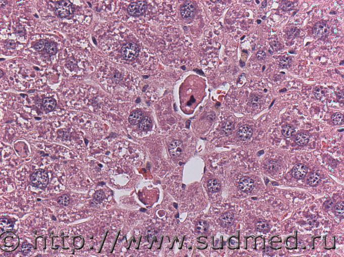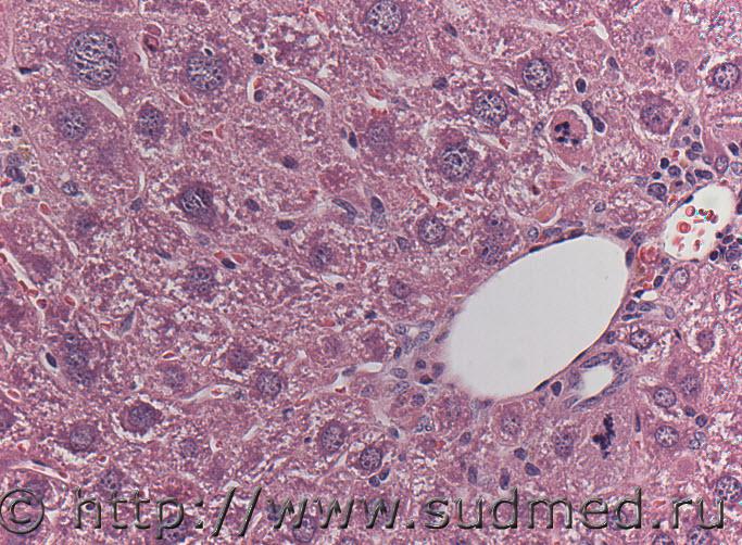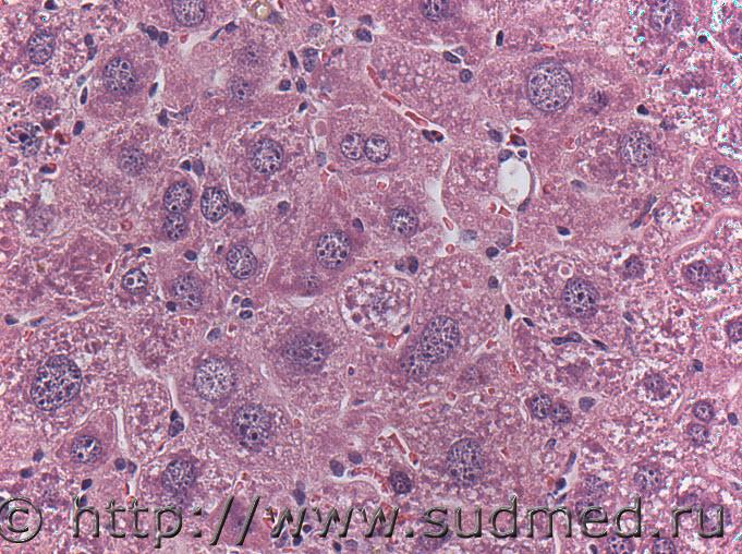 После пятикратного внутривенного введения с интервалом в три дня гепатопротектора наблюдается помимо пролиферации гепатоцитов выраженная их гипертрофия, сопровождающаяся гибелью отдельных клеток. Интересно узнать мнение относительно патогенеза процесса.