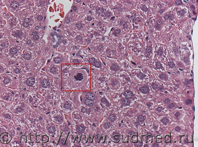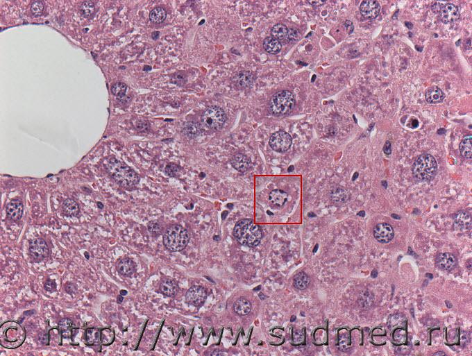 При клиническом осмотре признаков отклонения в состоянии здоровья животных ветеринарная служба не наблюдала, удивительно, но все биохимические тесты тоже в норме. Уважаемый Доктор морфолог, представляю вниманию еще одно фото на котором в красной рамке выделен гепатоцит. Как Вы расцениваете состояние ядра? Очень похоже на прометафазу, но с другой стороны цитоплазма патологически видоизменена, клетка набухшая, и, по-видимому, ей не до митоза У меня проблема, не могу понять, как отвечать с цитатой! Эскизы прикрепленных изображений |
