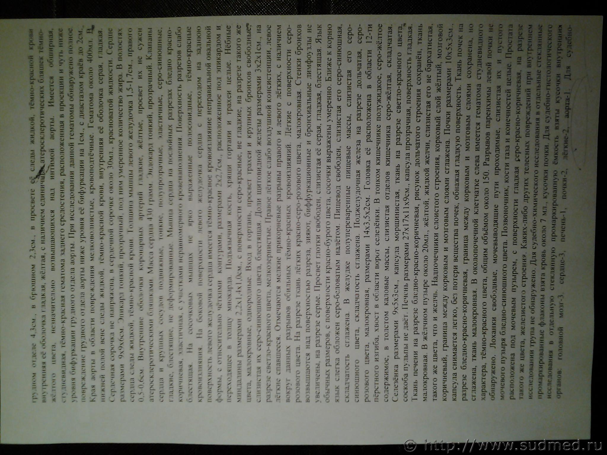 Вы обратите внимание на то,сколько крови содержится в плевральных полостях и на гематому левой околопочечной клетчатки.Вы же уже посчитали. |