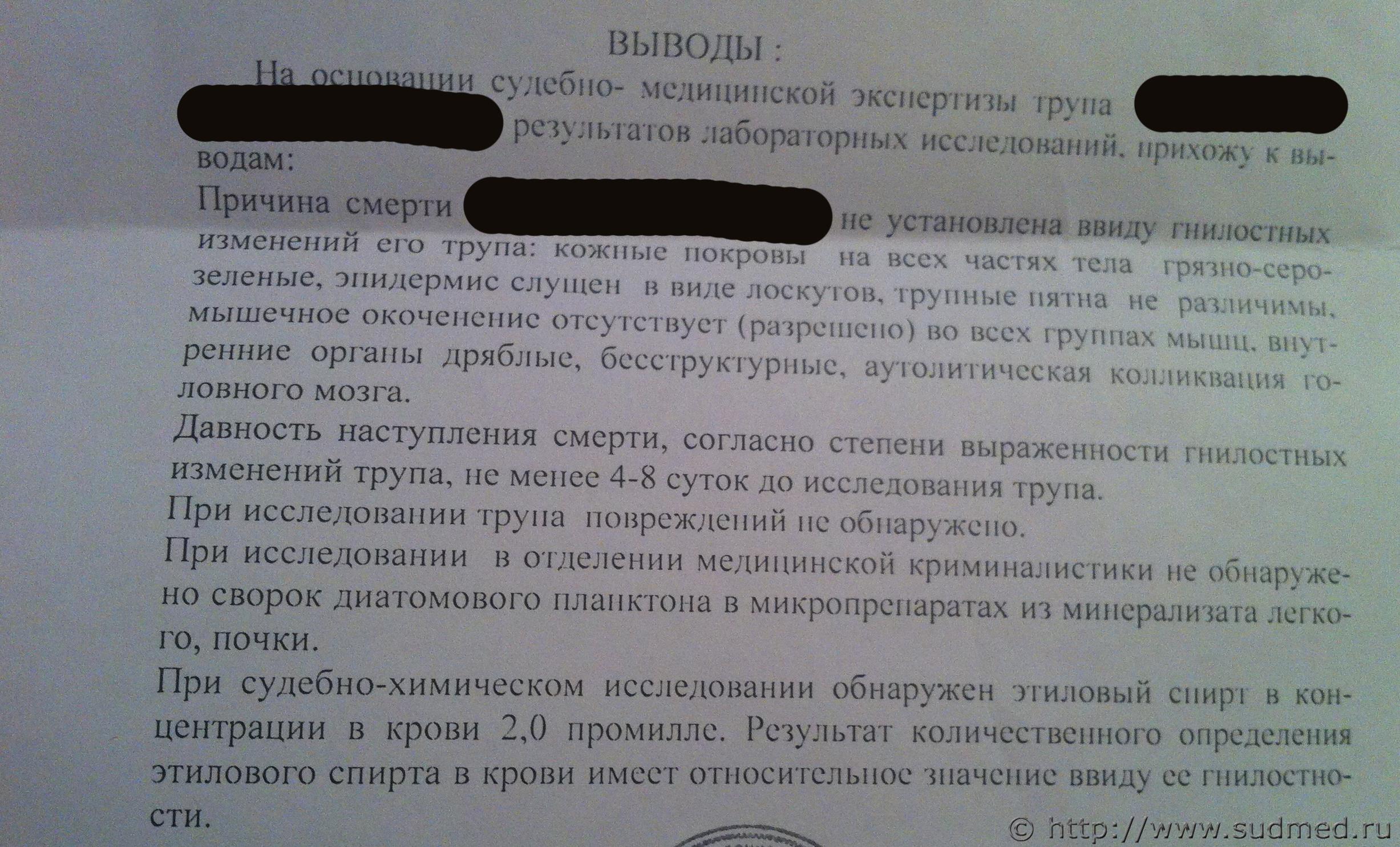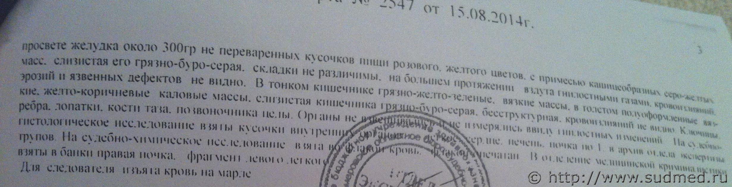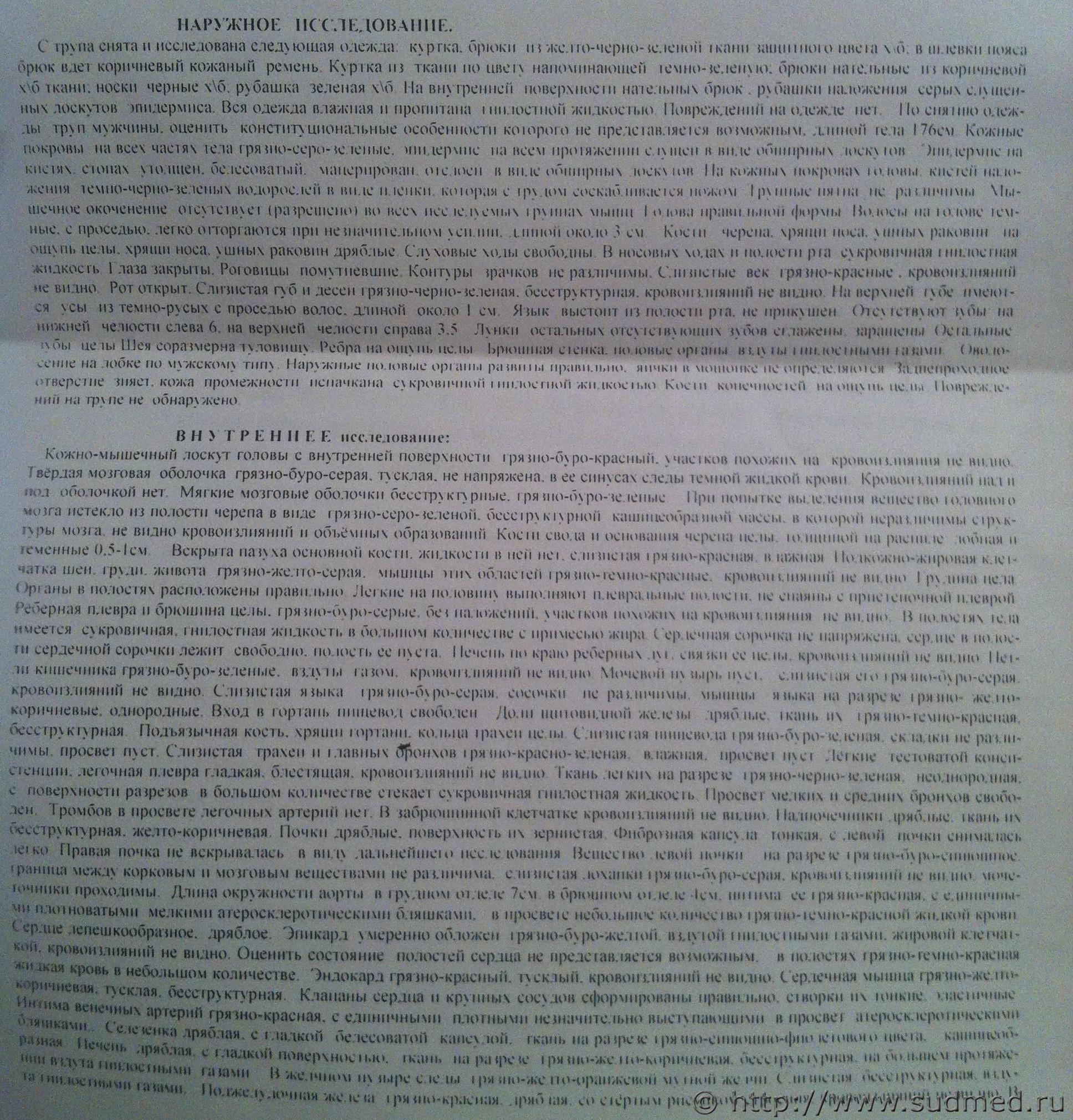 Вот акт о вскрытии