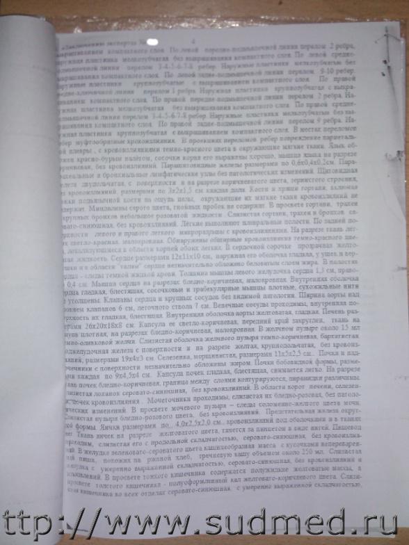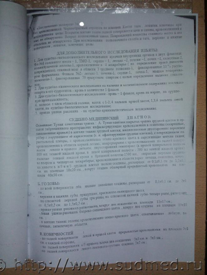 Можете дать детальное описание из Заключения эксперта? завтра заберу документы и выложу экспертизу красителя на гипсовой лангете с фото и экспертизу трупа после эксгумации, если получится то сделаю это сегодня к вечеру. Не верю. не верите что так написано или не верите по поводу возможности причинения этих травм ударами руки или ноги? если можно подробней, для нас это очень важно. Спасибо Вам за внимание к нашей беде. |