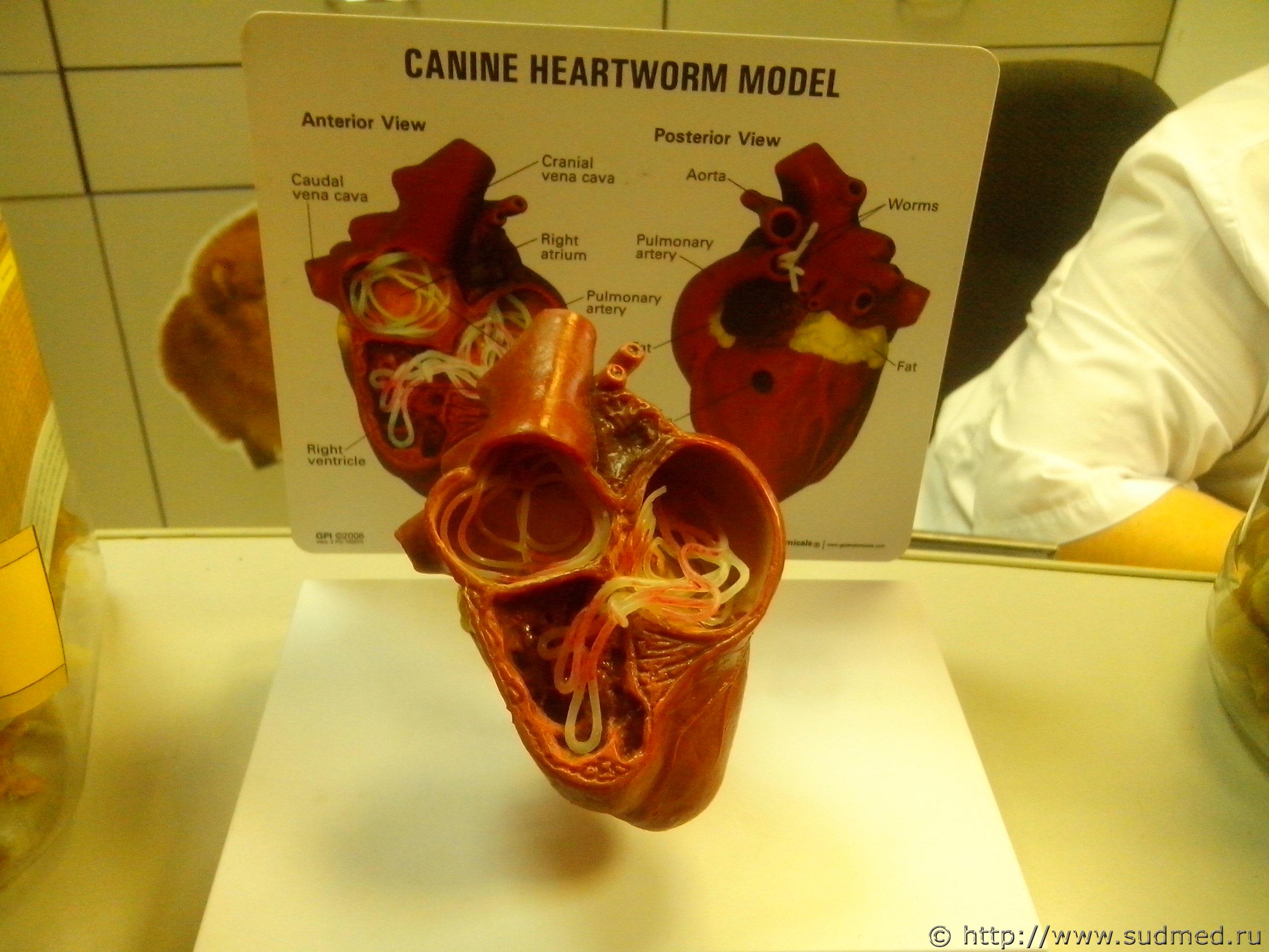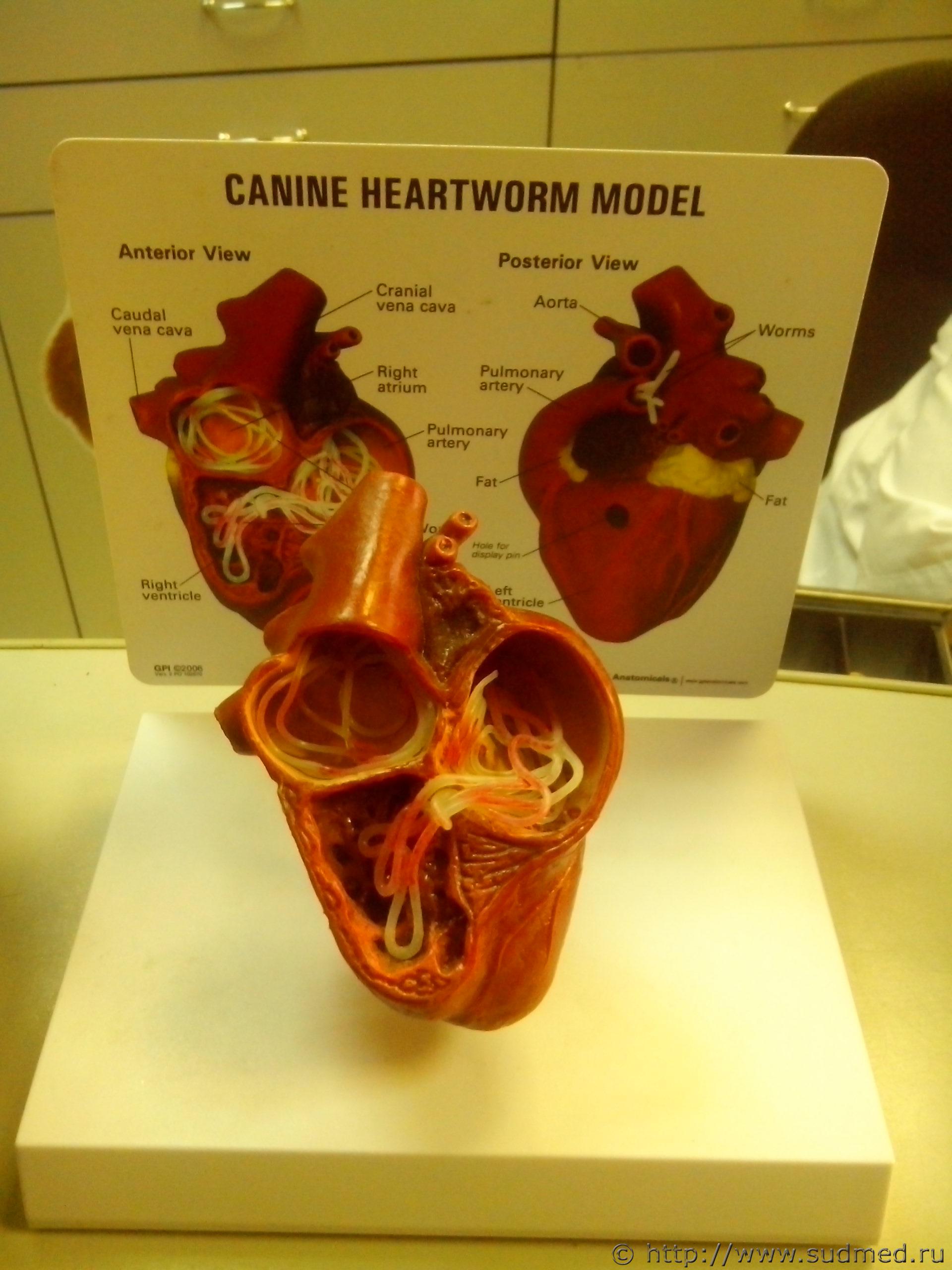 Пожалуйста, проконсультируйте общетеоретически. Был сегодня в ветаптеке, и сфотографировал такую вот модель сердца собаки, пораженное червями На вет сайтах русскоязычных ничего не нашел, штука эта в наших краях, как я понял, редчайшая, из знакомых вет врачей никто такого не видел. Своим животным против кожных паразитов периодически вводим инвермектин, он также убивает червей. С теми, которые в кишечнике, понятно - выдут естественным путем. А в кровеносном русле как? Прогноз неблагоприятный? Или на ранних стадиях возможна какая-то компенсация? P.S. Я вполне адекватно к этому всему отношусь, заразиться не боюсь, вопрос продиктован интересом к ветеринарии. |