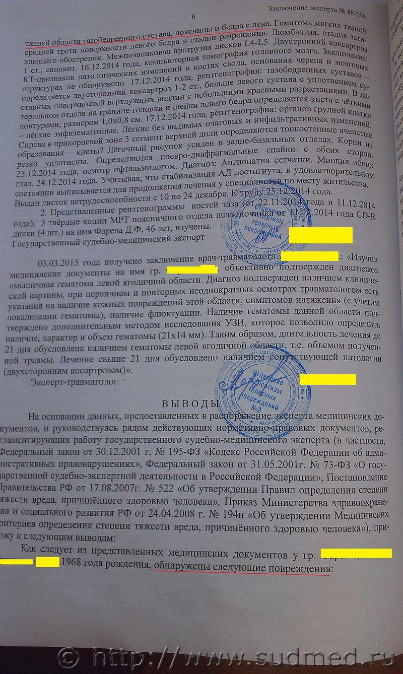 Легкий вред здоровью при одних только повреждениях мягких тканей, помогите разобраться с обоснованностью заключения |