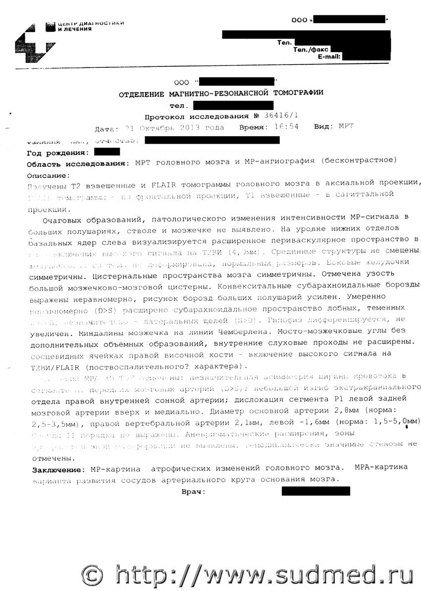 Описанная симптоматика, данные обследований, оказанная медицинская помощь соответствуют выставленным диагнозам. Выявленная на МРТ "атрофия" не является проявлением черепно-мозговой травмы, это то, что называют органическим поражением ЦНС. Более подробно о качестве медицинской помощи распишут в "облздравотделе".