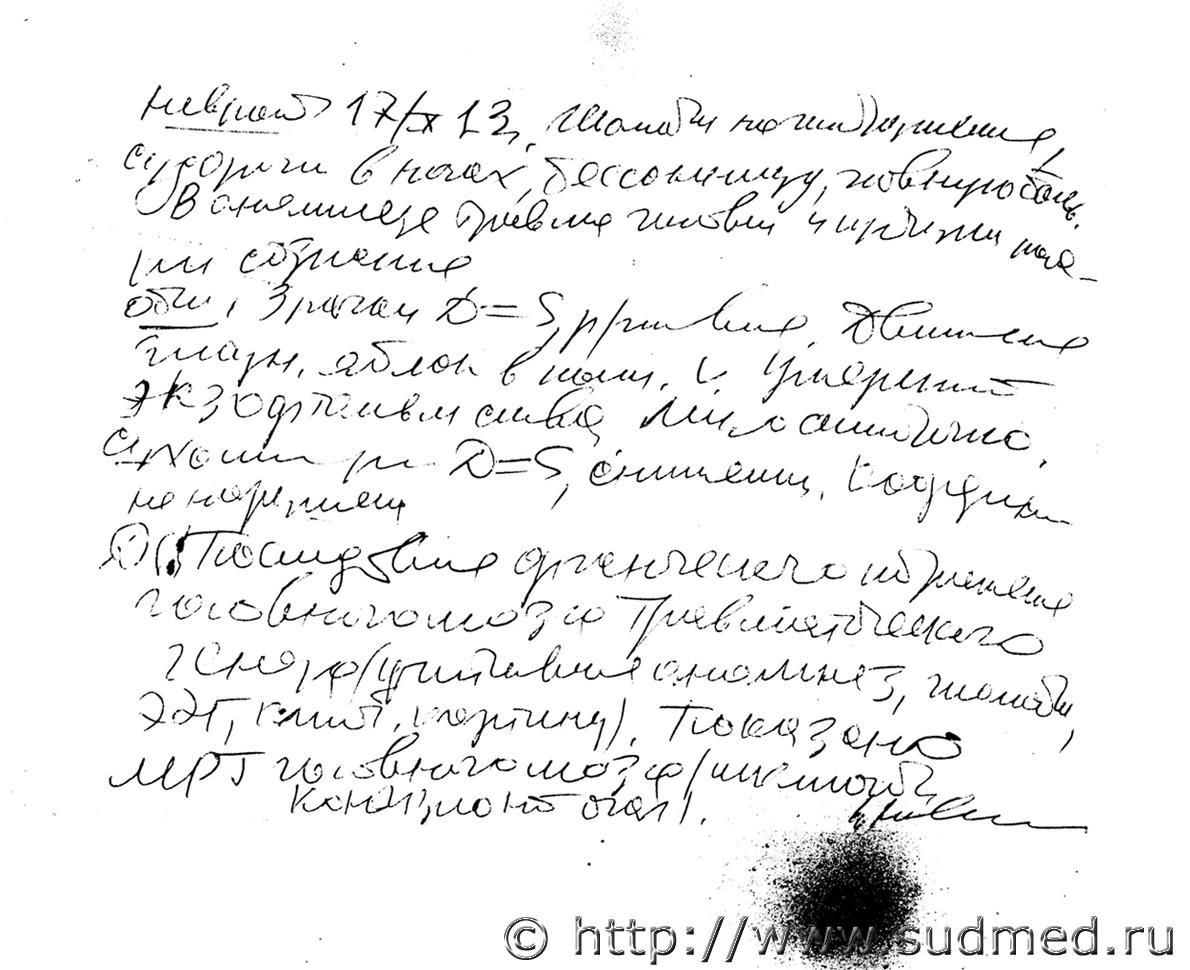 Вред здоровью определен верно, данных за ЧМТ не отражено. В допросе эксперта на стр. 48 появляется перелом мыщелка большеберцовой кости. В экспертизе этого нет. Перелом мыщелка большеберцовой кости это по второй потерпевшей. А где ответ на мой вопрос Правильно ли мне поставлен диагноз врачом нейрохирургом и в полном ли объёме оказывалась мне медицинская помощь и кто это устанавливает? И о чём свидетельствуют в совокупности мои жалобы результаты ЭЭГ, МРТ и врача невролога? В полном ли объёме установлен характер и вред моему здоровью? |