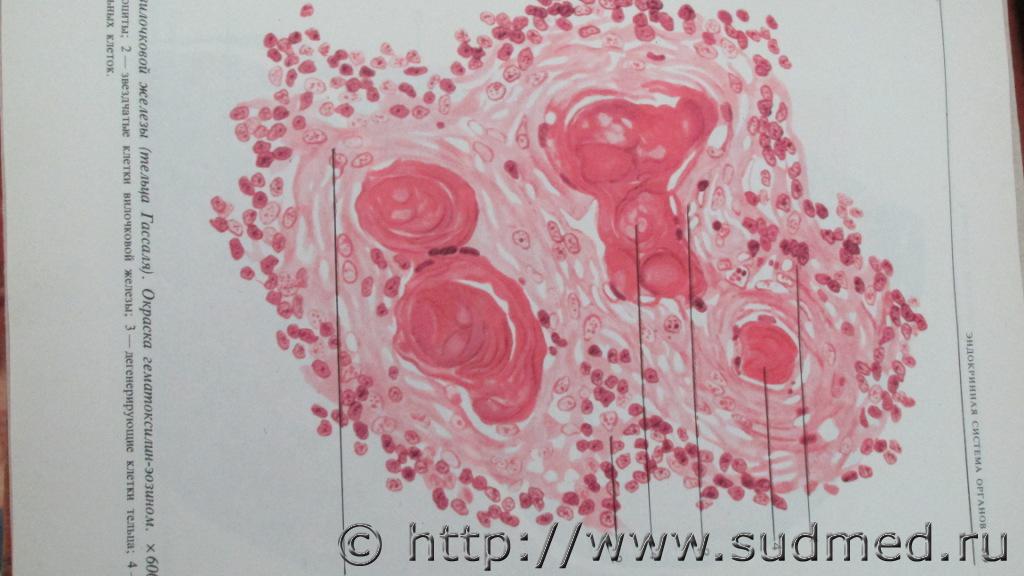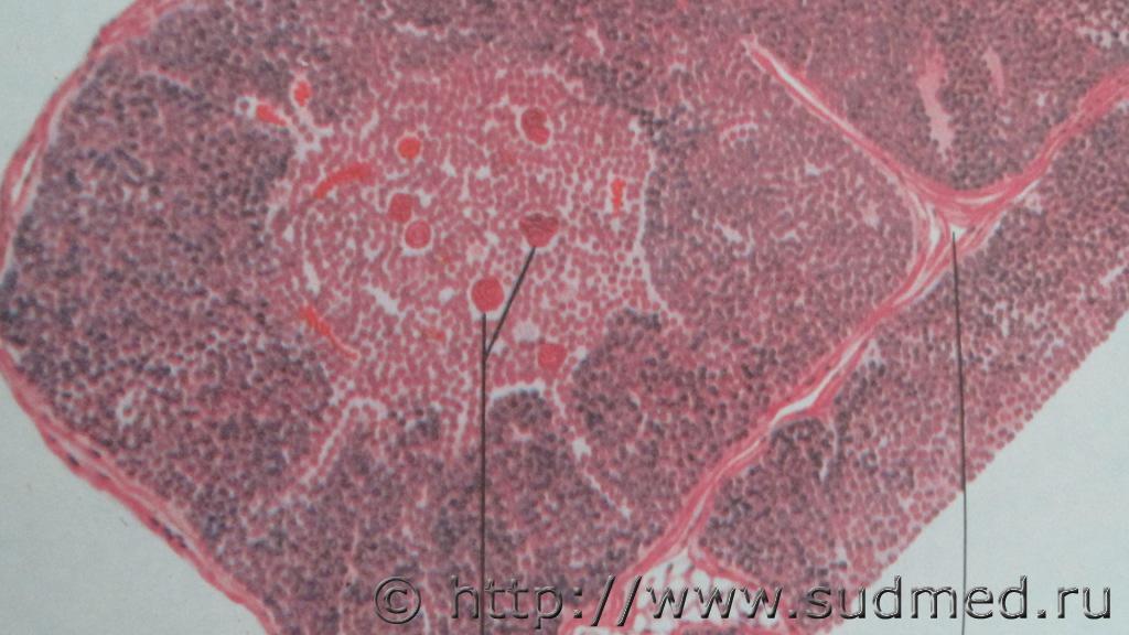 Ув.доктор морфолог. Интересует ответ на вопрос про 7 фото. тимус дольчатого строения,при снижении иммунного статуса происходит постепенное истощение долек и на 6 и 7 истощение долек тимуса,пустоты- синусоиды опустошенные(напоминающие полурасправленные детские альвеолярные полости как бы с широкими альвеолярными перегородками), местами полнокровные видны на 6 в меньшем увеличении. А на 7 в большом увеличении. Истощение проявляется в убывании тимоцитов(малый,средний,большие лимфоциты,В-лимфоцитов(киллеров и хелперов), плазматические клетки,ретикулоцитов и т.д.) корковой и мозговой зон со стиранием границ и опустощением синусоидов. |