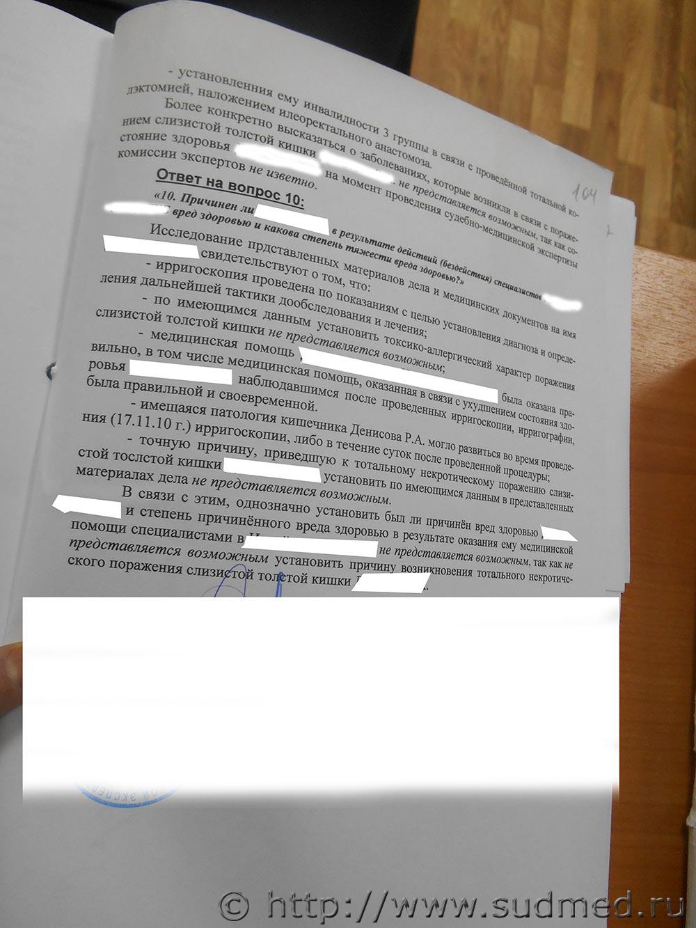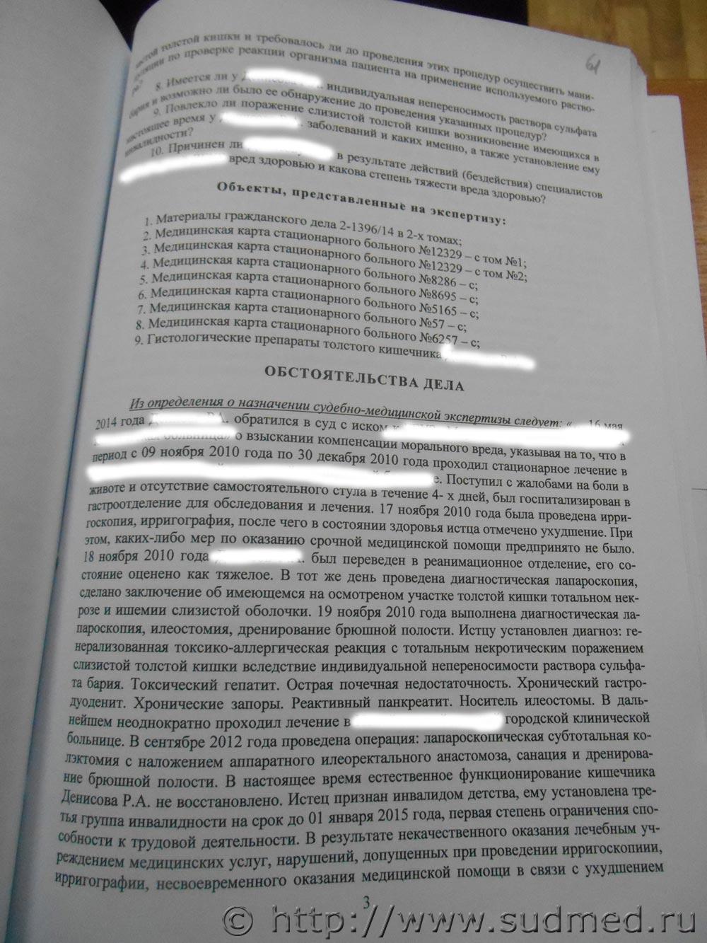 Здравствуйте! Заранее прошу прощения, возможно не смогу кратко и корректно сформулировать вопросы. Вопрос по заключению судебной экспертизы. Ребенку после проведения мед.манипуляций стало хуже, начался тотальный некроз прямой кишки. В мед.документах есть фраза "химическое поражение слизистой кишечника?", однако эксперты пришли к выводу, что установить причину тотального некротического поражения прямой кишки невозможно". Действительно ли это так? Или есть возможность установить на основе имеющихся данных или путем проведения неких дополнительных исследований причину развития некроза? Мог ли быть начаться некроз из-за того что был введен не сульфат бария, а некий другой (ошибочно например) состав, более агрессивный и т.д. И может ли так вот сразу после определенных манипуляций начаться некроз, ни с того ни с сего, да еще такой. что причину возникновения его невозможно установить? Прикладываю заключение. Спасибо, вот ссылка на архив с заключением.[url=https://yadi.sk/d/lL8gYlFphT3er]