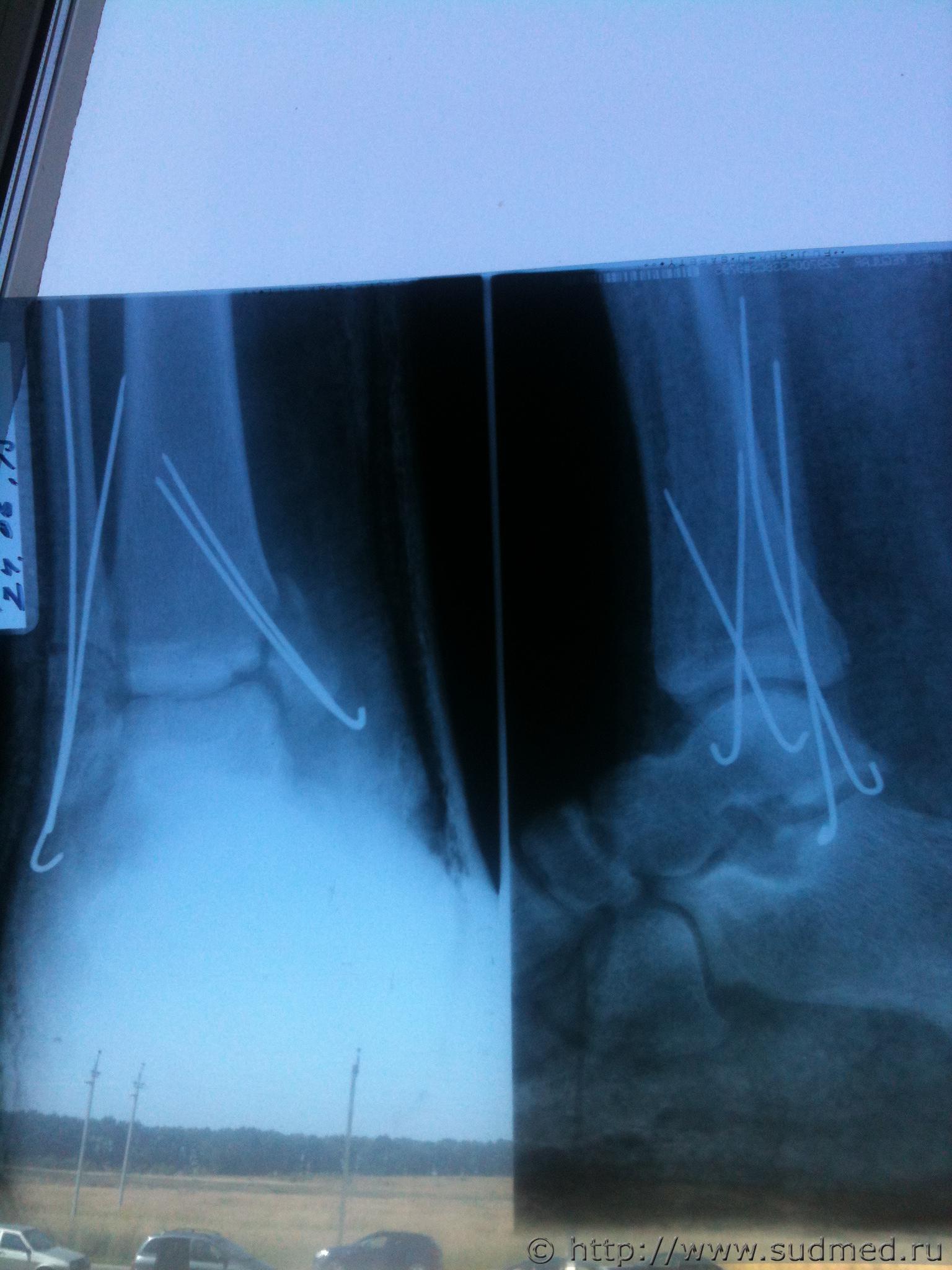 Судя по представленным рентгенограммам - переломы внутренней и наружной лодыжек. Если кроме этого ничего другого "серьезного" не обнаружено - вред здоровью средней тяжести. |