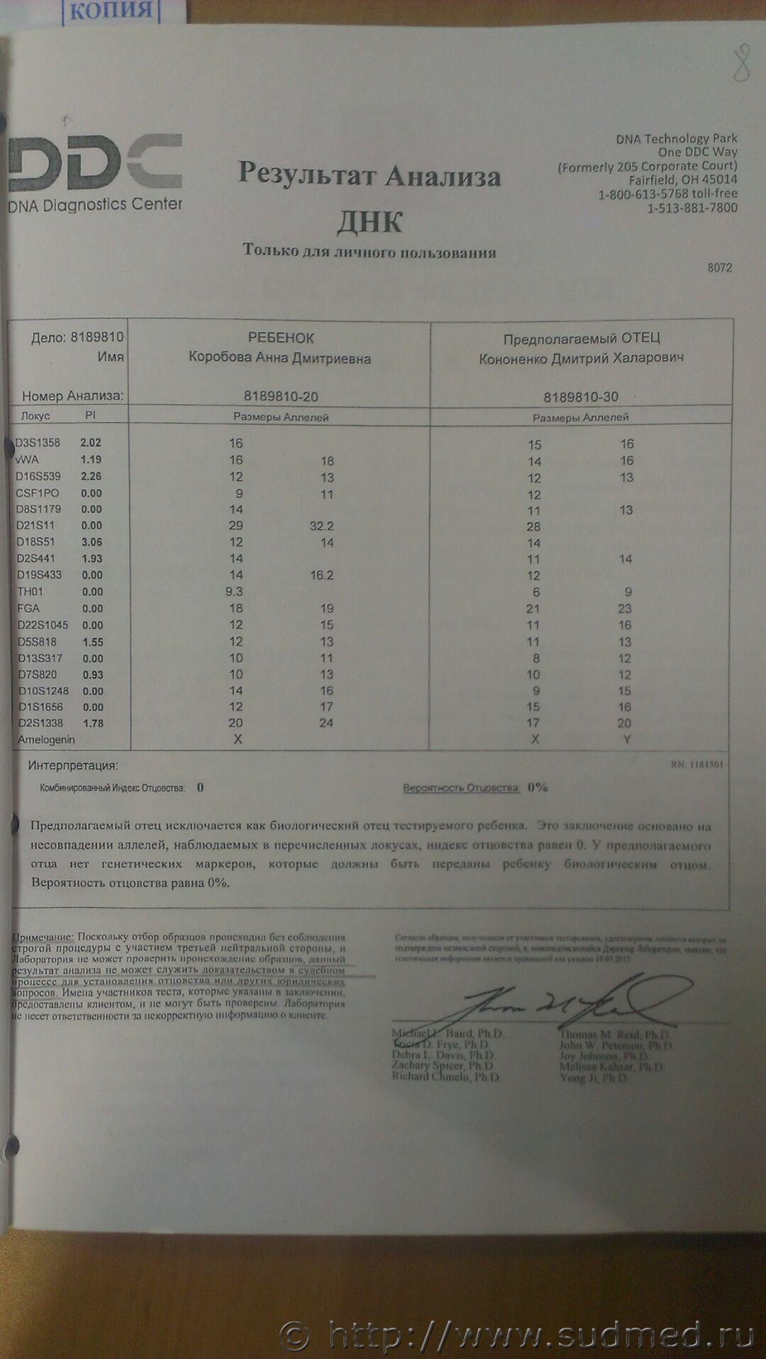Результат Экспертизы ДНК, По каким образцам проведена экспертиза ДНК |