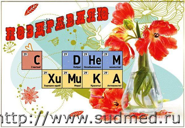 Коллеги-химики - с Праздником! Успехов и удачи - на работе, здоровья и любви - дома, и достатка - там, и там!
