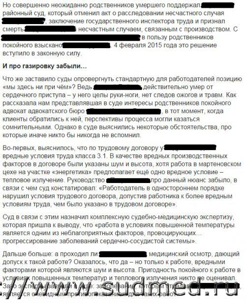 Значит, созданная тема о признании смерти как несчастного случая, связанного с производством? Но это прерогатива специальной комиссии и суда. Никак не СМЭ.