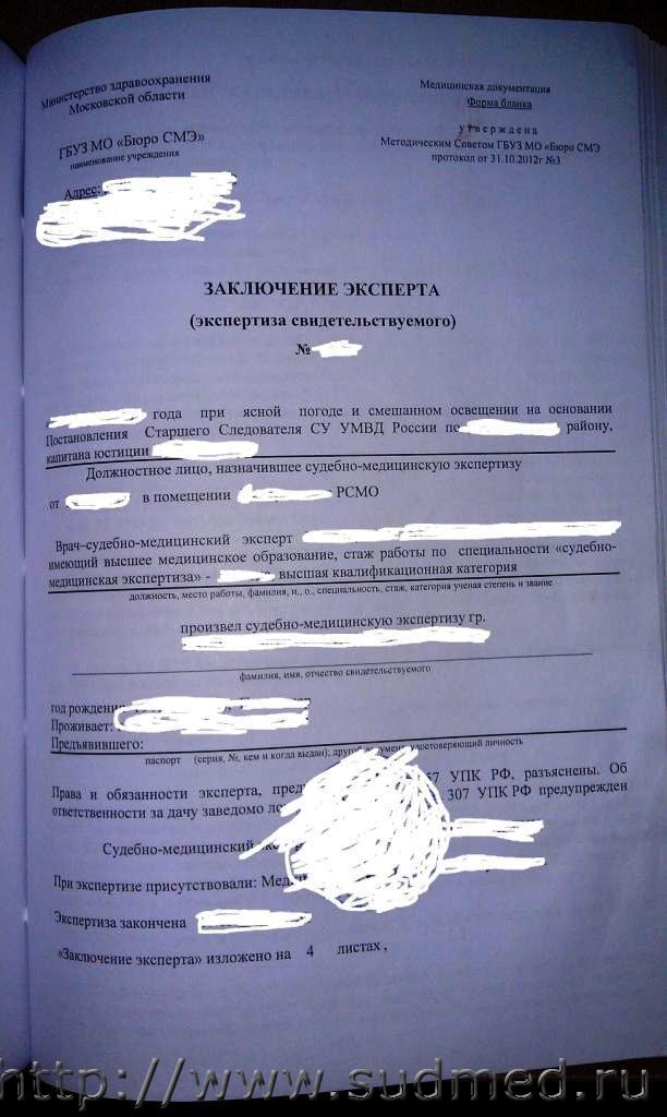 Вот то самое мед. освидетельствование с зафиксированной раной на лбу.