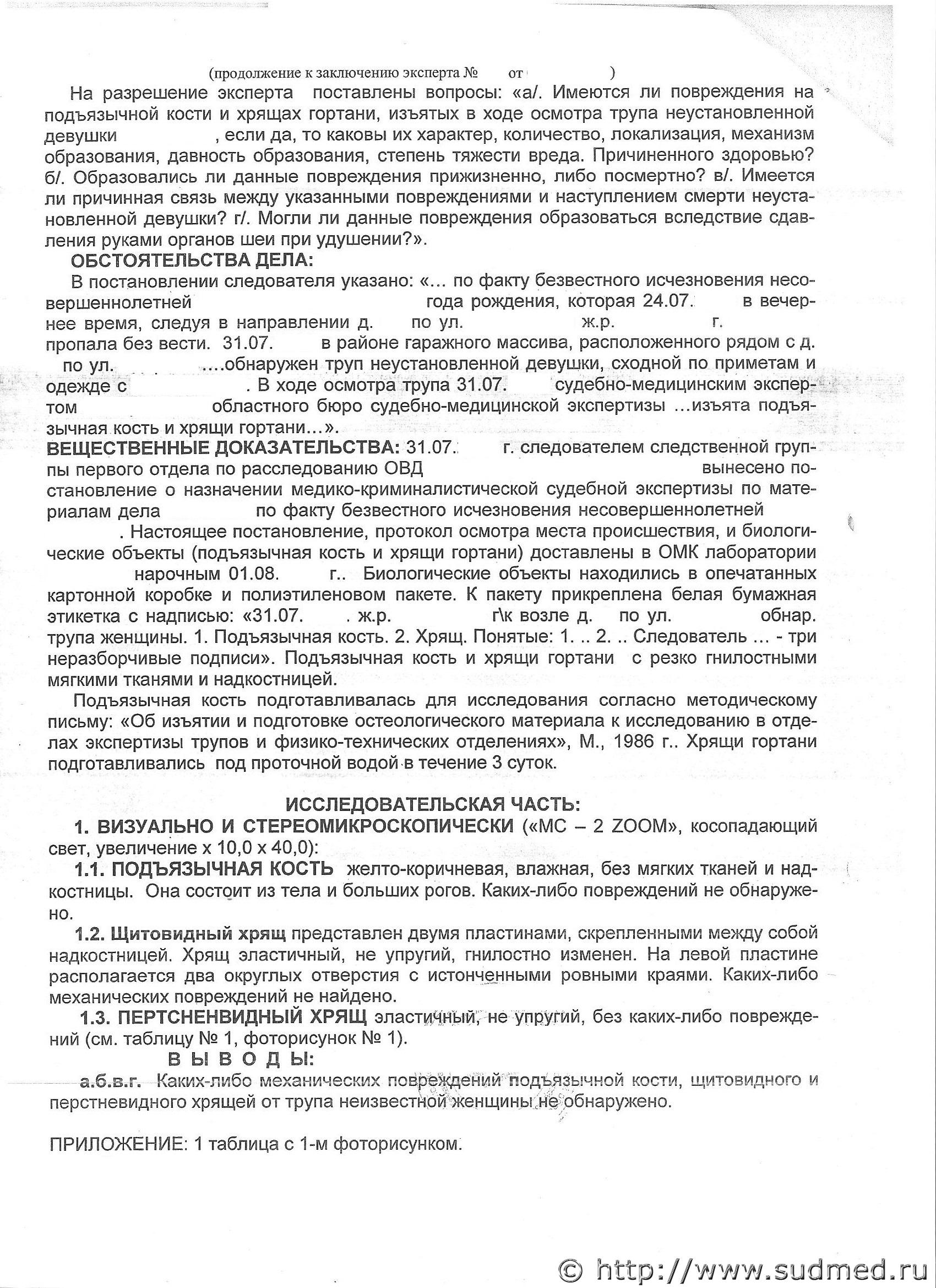 Цитата а экспертиза четко дала понять, что подъязычная кость и хрящ не поврежден, борозд на шее нет, сердце не увеличенно. все это не исключает смерть от удушения |