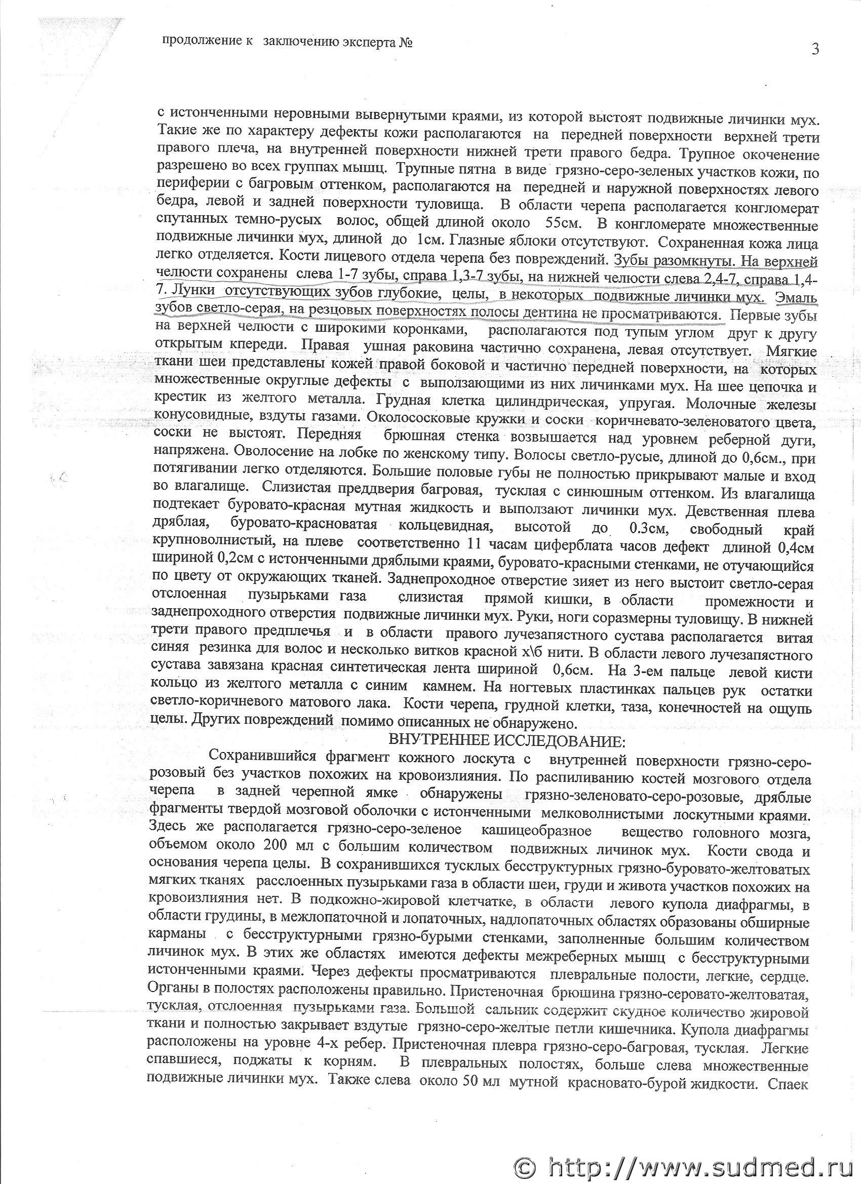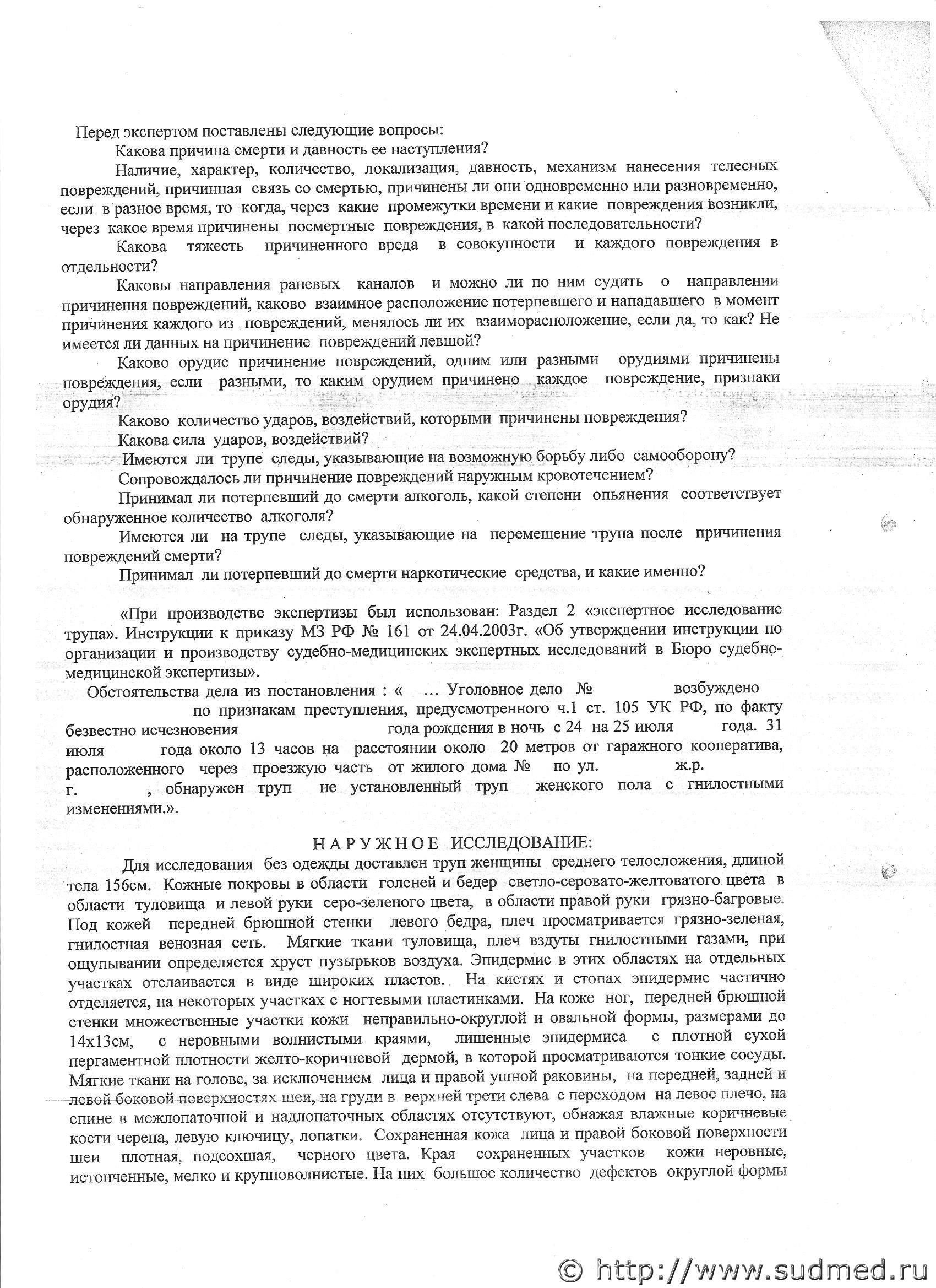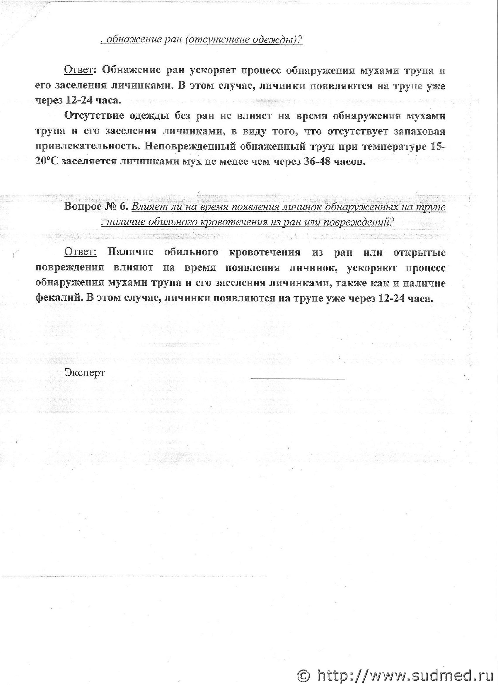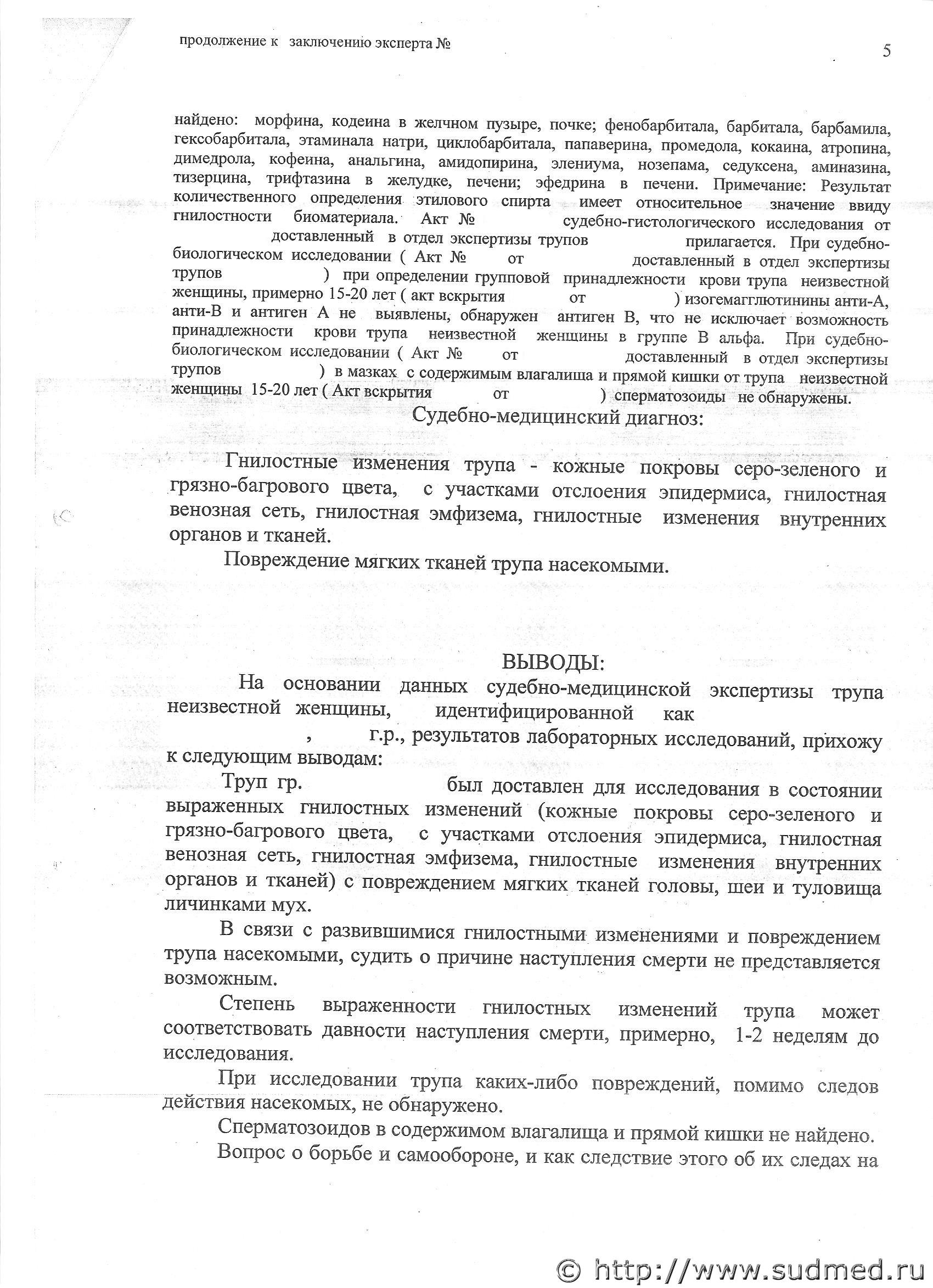 Здравствуйте дорогие эксперты. У меня очень сложный вопрос, на мой взгляд. На руках СМЭ по трупу и заключение, которое не смогло ответить на поставленные перед ней вопросы, а точнее на дату смерти и её причины. Возможно ли такое, труп обнаружили на открытой местности, с момента исчезновения и до момента обнаружения прошло 7 дней. С разрешения администрации могу приложить оба материала и фото, так как по данному делу, уже вынесен приговор, противоречащий заключению СМЭ. По "явке с повинной" было признание об удушении, а экспертиза четко дала понять, что подъязычная кость и хрящ не поврежден, борозд на шее нет, сердце не увеличенно. По личинкам с трупа, не удалось даже приблизительно установить дату смерти и факт его постоянного нахождения на месте обнаружении.