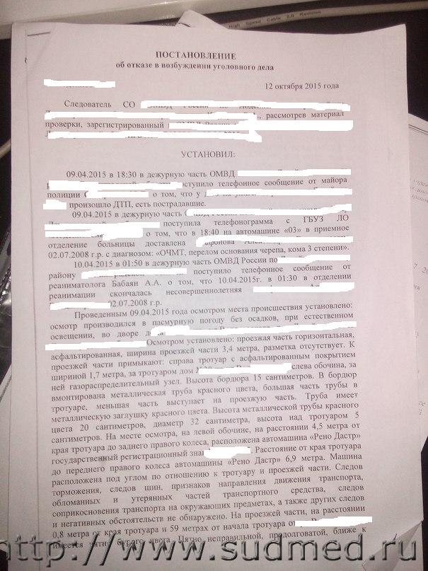 12 октября 2015 года было постановление об отказе в возбуждение уголовного дела, но тк экспертизы которые были рекомендованы экспертом не были проведены прокуратура вернула дело обратно, 8 декабря 2015 нами было подано ходатайство о назначение экспертиз, которое было принято под подпись, возвращаемся к срокам... пошел пятый месяц....Копию экспертизы трупа скинуть не получается тк она очень плохого качества, очень светлая, скину постановление.Как долго проводится экспертиза ? и ещё копия ходатайство , в неё те же вопросы , что ставил эксперт в заключении. Ваше мнение ? Эскизы прикрепленных изображений |