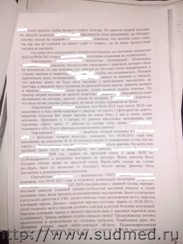 Что имеем-ребёнка последний раз видели заезжающим на велосипеде по тротуару во двор дома Кто видел? По словам водителя девочку она видела, как только она проехала -ребёнок упал. Где видела? Ребёнок двигался, или стоял? ТС, Вы кто по данному делу? |