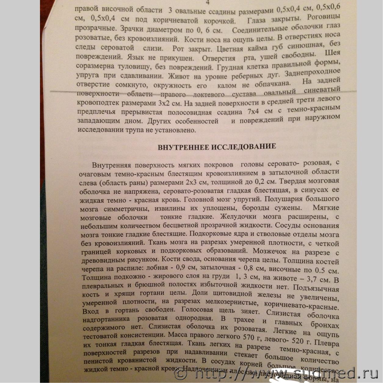 Ув. TanyaKlem! Прикрепленные файлы (копии листов заключения эксперта) удалены. Приведите их в соответствие с п.7.3.1 Правил Форума судебных медиков (уберите личные данные, адреса, названия учреждений, подписи и т.д.).