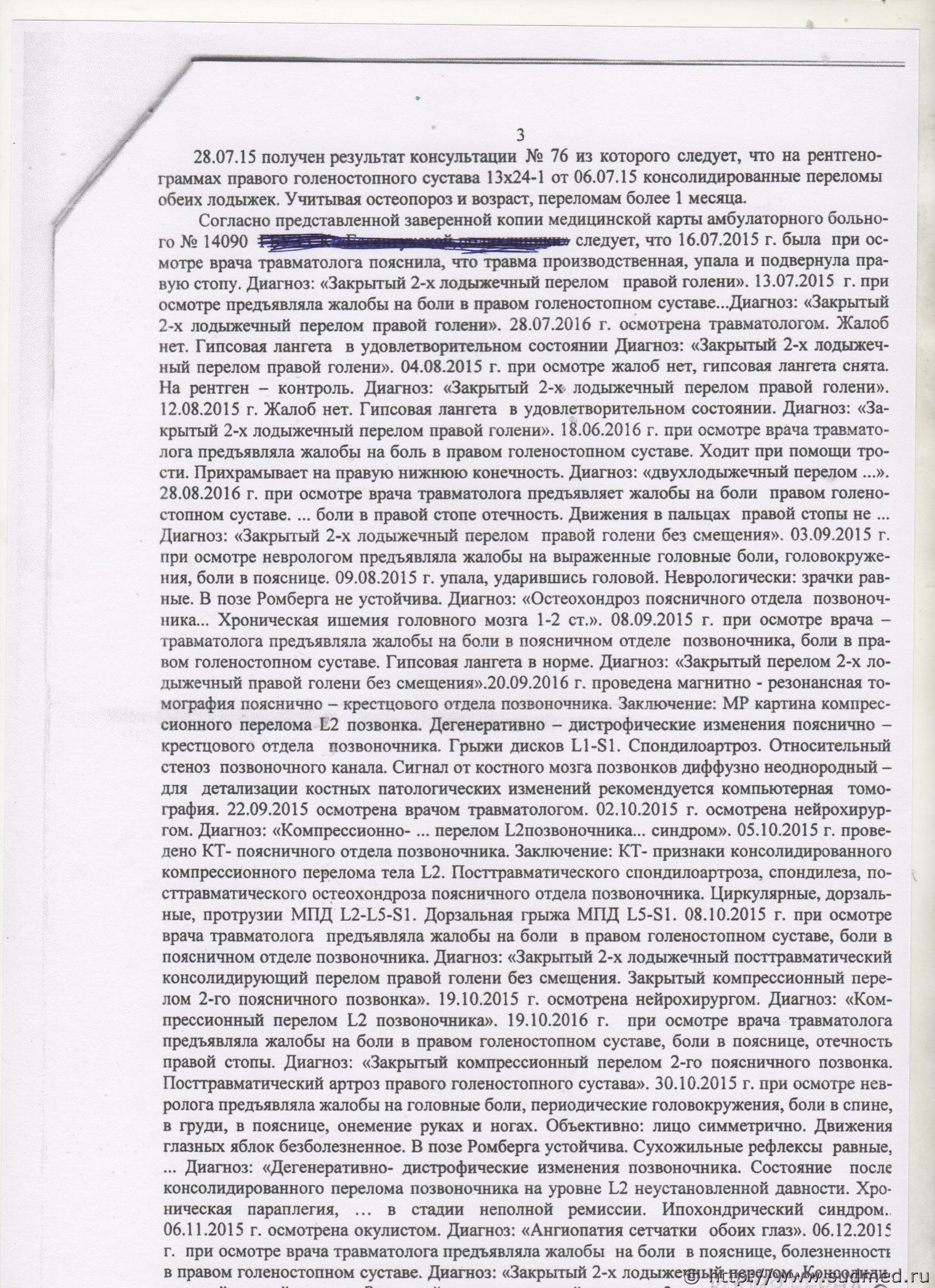 высылаю повторное заключение( дополнительное) уже сделанное в августе мес. 2016 г. а травму получила в июле 2015 года.