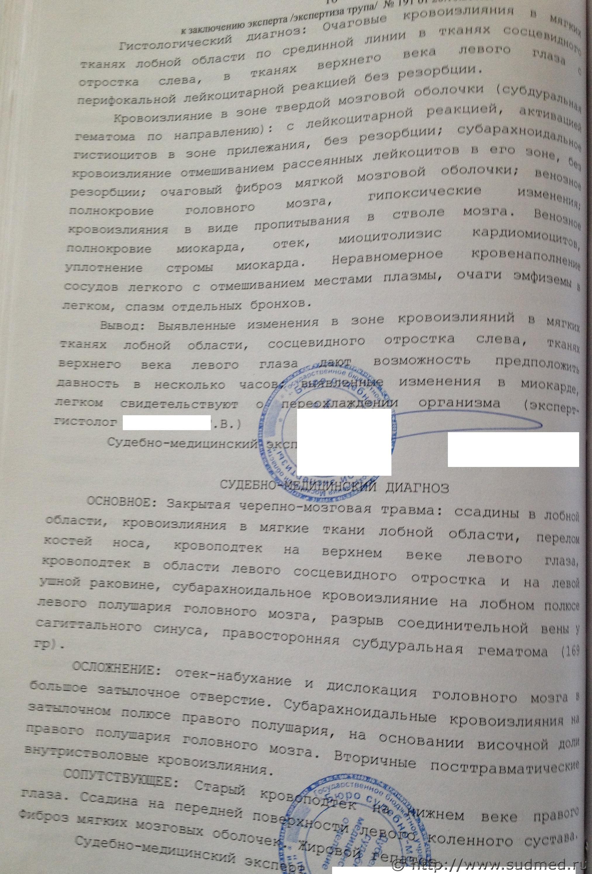 Представьте полностью заключение эксперта (все страницы, с соблюдением п.7.3.1 Правил Форума судебных медиков).