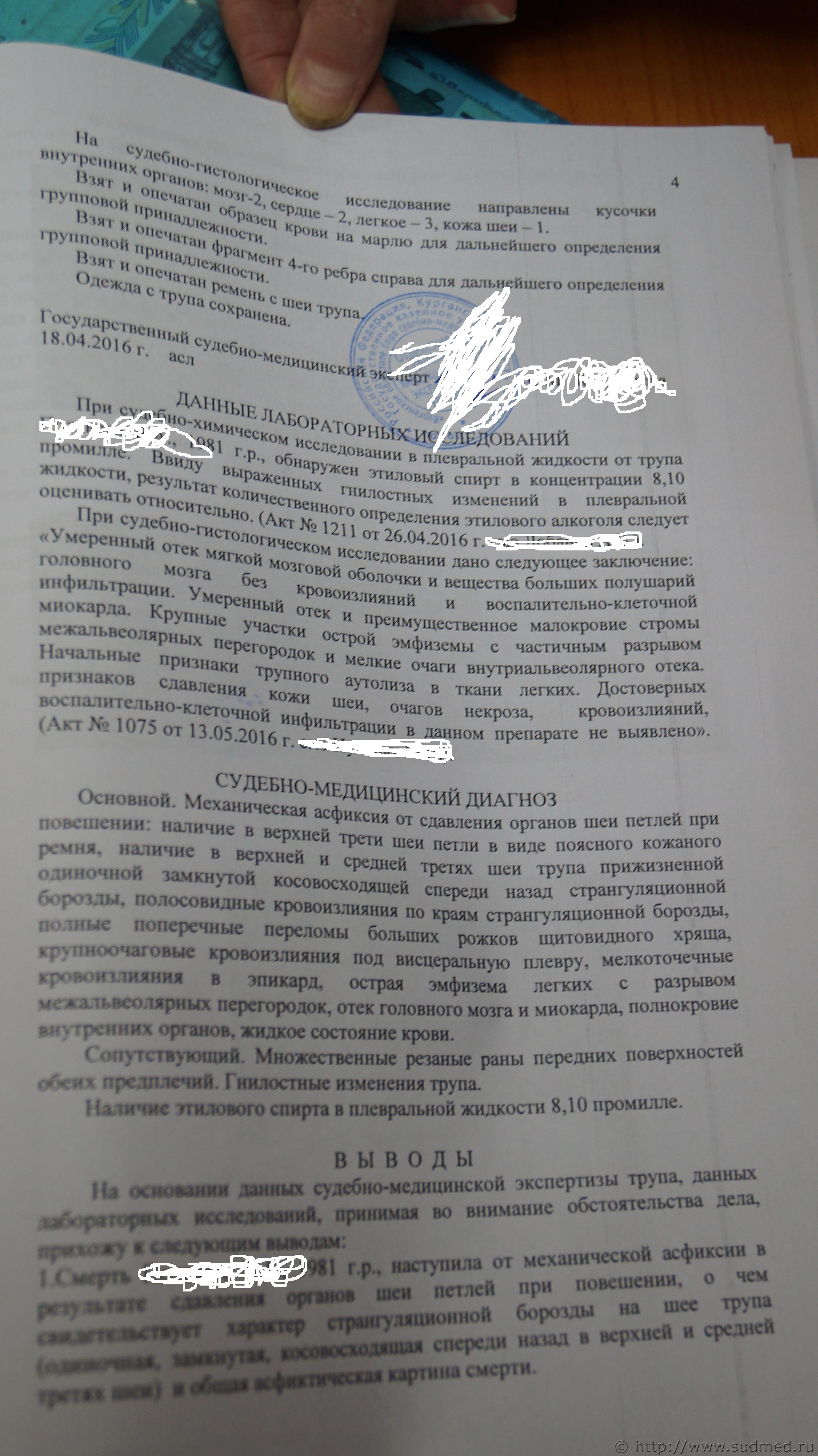 Помощь по экспертизе трупа, удушение,утопление или смерть от потери крови |