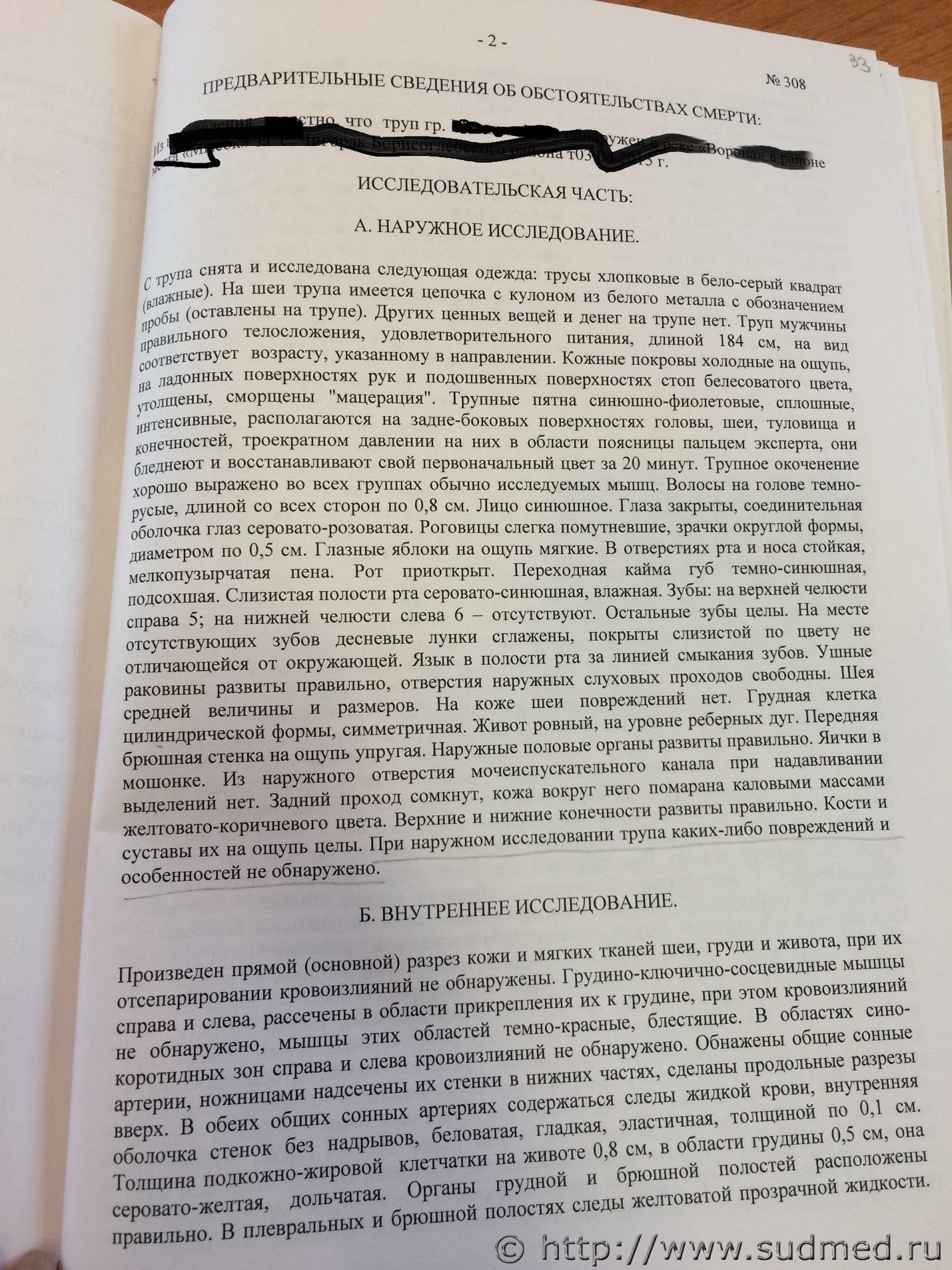 Файлы убрал.Приведите их в соответствие пункту 7.3.1 правил нашего форума. 1.Где именно ? 2.А откуда взялся Акт СМИ трупа ? Вы не правильно поняли. В морг тело доставили, вскрытие сделали за час. Я имею ввиду, что единственный свидетель-сожительница сразу же уехала, как только тело обнаружили в воде. |