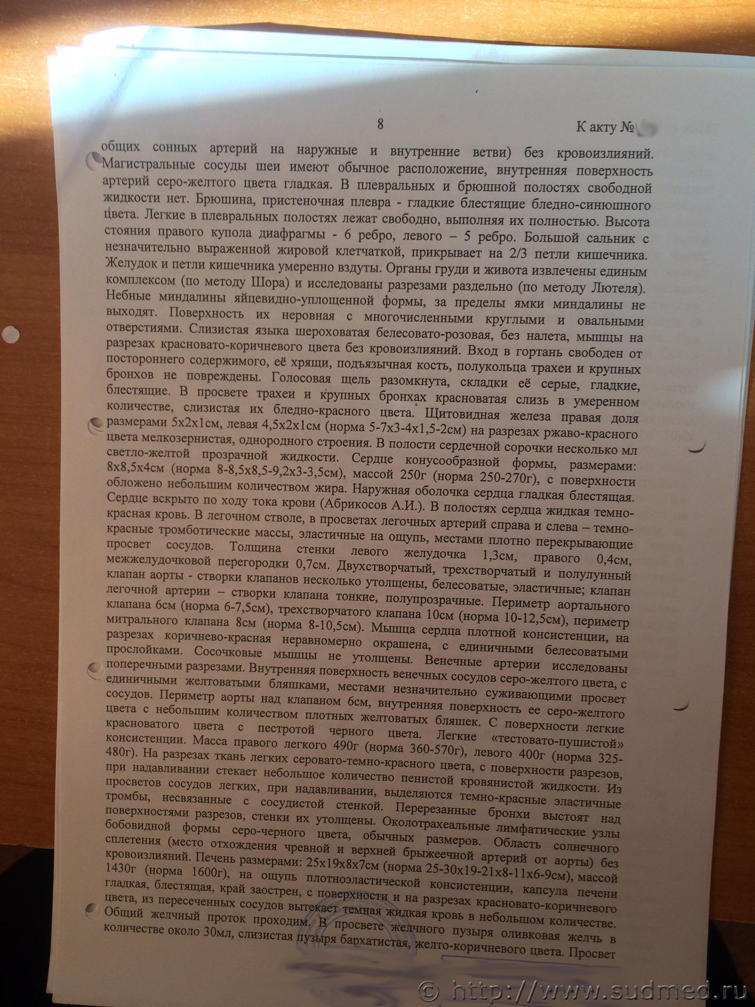 Вопрос к экспертам: Правильно ли поставлен судебно-медицинский диагноз при вскрытии: ОСН: Абдоминоптоз Операция от...Абдоминопластика ОСЛ:Тромбоз вен передней брюшной стенки. Тромбоэмболия и жировая эмболия легочных артерий:наличие смешанных тромбов в просветах артерий легких, единичных жировых эмболов в просвете мелких сосудов и капилляров легкого. Признаки нарушения кровообращения в сердечной мышце. Отек легкого. Периваскулярный отек вещества головного мозга. СОП: Атеросклероз аорты и венечных артерий. Периваскулярный кардиосклероз, неравномерно выраженный липофусцоноз миокарда. ЗАКЛЮЧЕНИЕ: Смерть наступила от тромбоэмболии и жировой эмболии легочных артерий, развившейся в результате тромбоза вен передней брюшной стенки, явившегося осложнением оперативного вмешательства-абдоминопластика, что подтверждается морфологическими признаками, обнаруженными при СМИ трупа и данными гистологического исследования. Если "при исследовании сосудов нижних конечностей-в их просветах каких либо тромбов не обнаружено" Вены малого таза не исследовались:"в полости малого таза множественные тканевые тяжи, разделяющиеся при помощи ножа(спайки): матка, маточные трубы, яичники не различимы". В анамнезе-гистероскопия, возраст пациентки 60 лет. Вопрос к экспертам: можно ли достоверно утверждать, что источником ТЭЛА явились вены передней брюшной стенки в области послеоперационных ран? P.S. Если нужно-напишу данные гистологии. P.P.S. Все требования Приказа МЗ № 233 были выполнены врачами P.P.P.S. В кавычках выдержки из акта вскрытия Заранее огромное спасибо за помощь и любые идеи! |