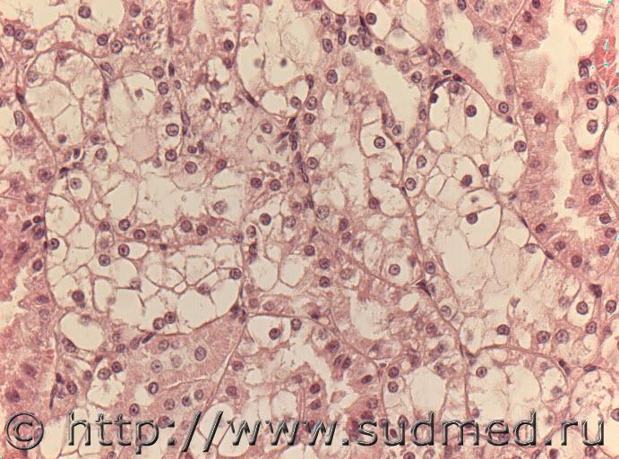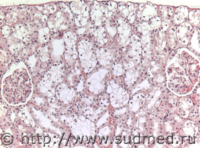 Наблюдается светлоклеточное перерождение Светлоклеточное перерождение подразумевает накопление липидов в почечном эпителии? Кстати, у этой же особи со стороны печени отмечен выраженный липогепатоз в сочетании с гидропической дистрофией. Но, для печени подобное сочетание дистрофий характерно. |
