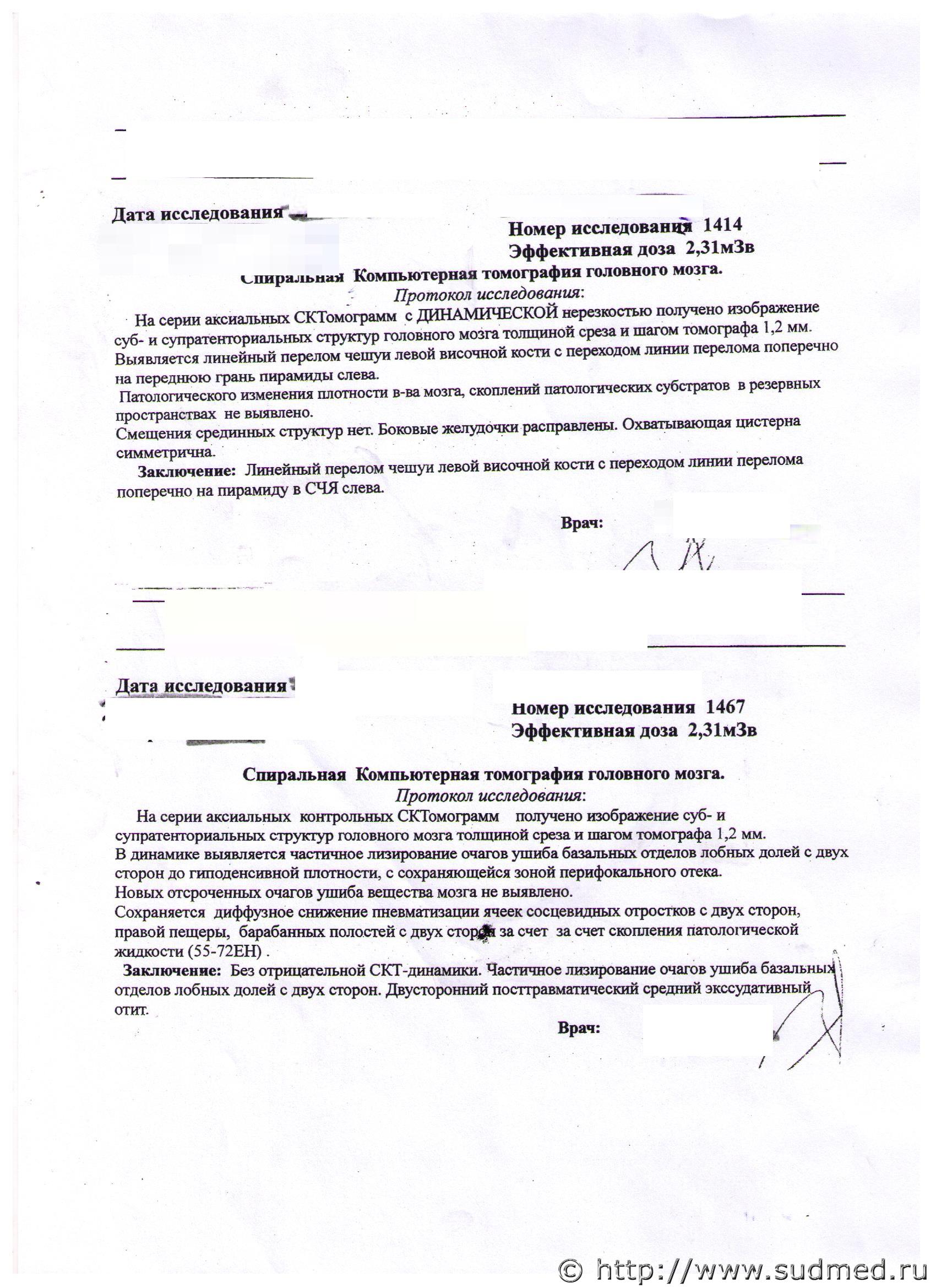 Заключение эксперта и протоколы КТ удалены. Приведите документы в полное соответствие с п. 7.3.1. правил ФСМ и потрудитесь повернуть документы в нормальное читаемое положение, уважайте труд людей, которые Вас консультируют!